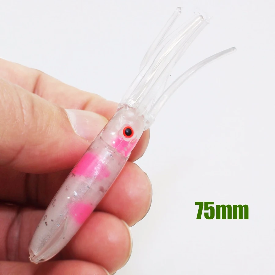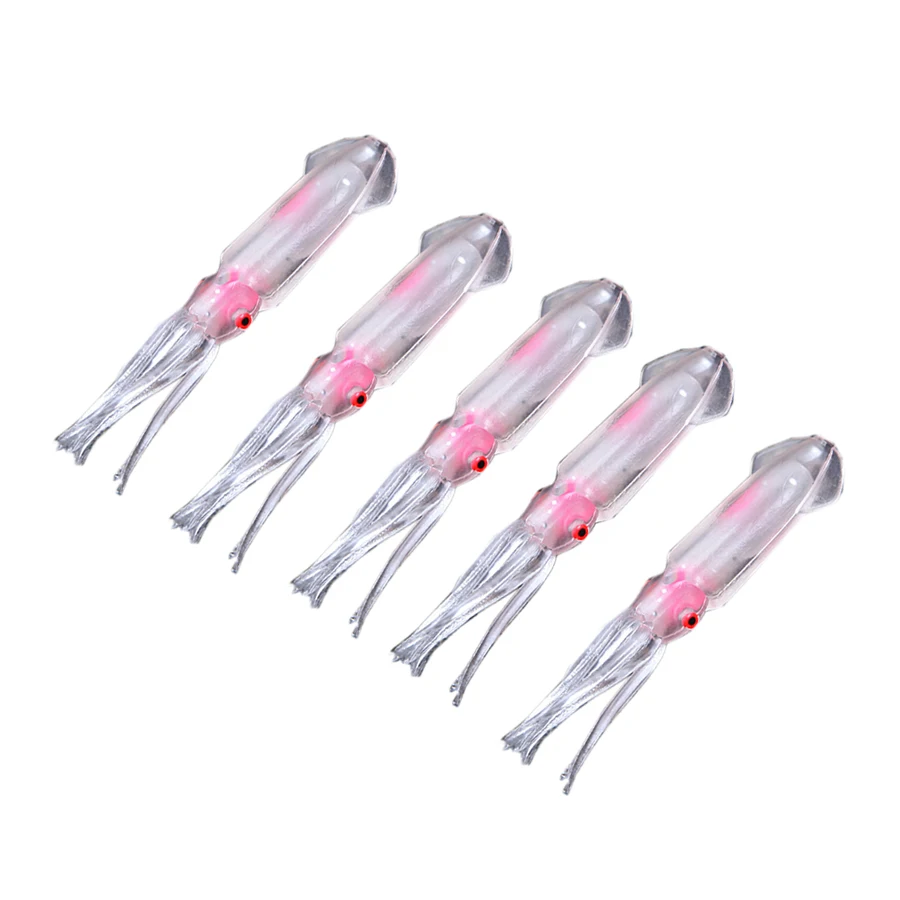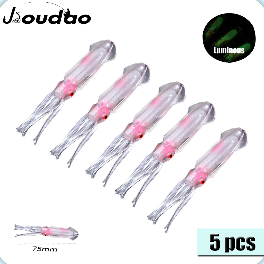 5 uds. Señuelos de pesca de calamar para pescadores a quienes les gusta hacer sus propios señuelos.Crean acciones de natación realistas en el agua.Acción de buceo suave y rápida, los ojos 3D lo convierten en una poderosa herramienta de captura.Cada señuelo tiene 1 anzuelo afilado incorporado, muy duradero.Maravillosa herramienta de pesca para los amantes de la pesca.Especificaciones:Tipo: cebo blandoCantidad: 5 unids/loteMaterial: pvcLongitud: aproximadamente 75 mm/2,8 pulgadas (cada uno)Peso total: Aprox.62 g/2,2 ozLista de paquetes:1*5 uds señuelos blandos