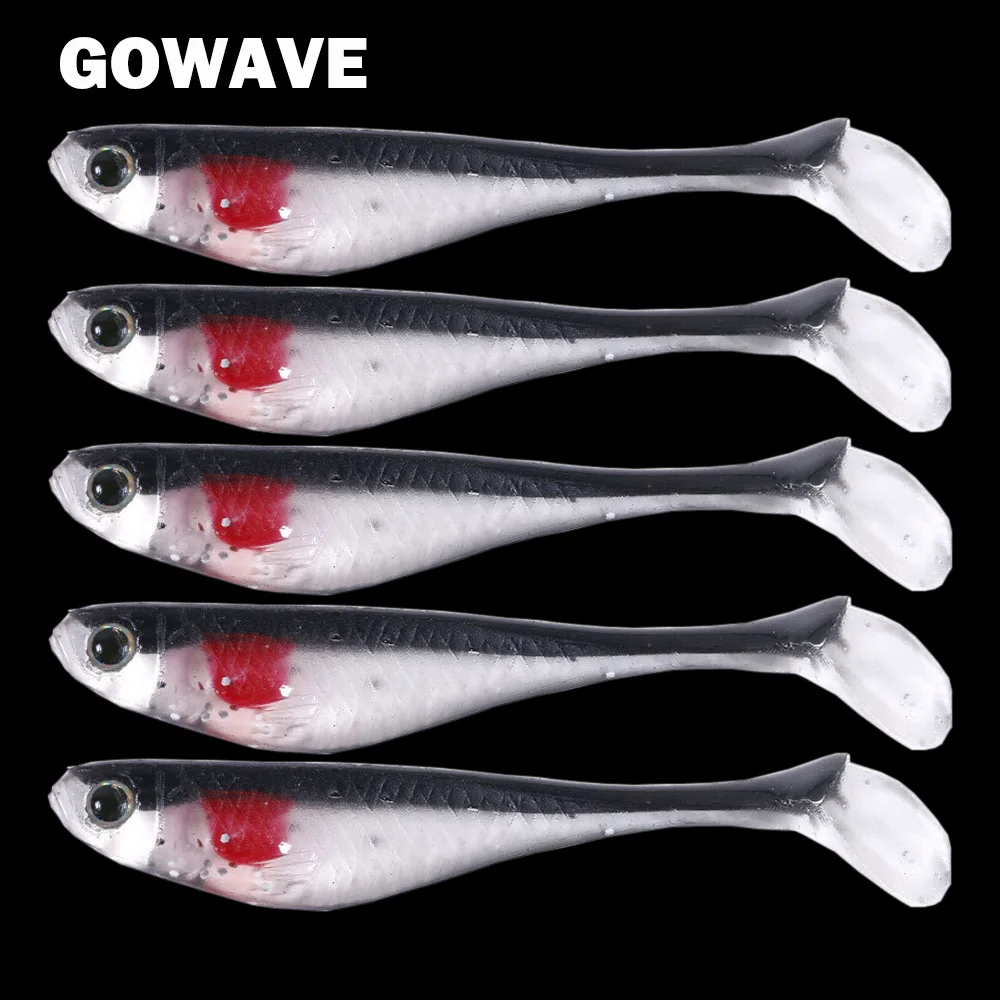5 uds Softbait 8.8cm/5g agua salada pesca de agua dulce suave Shad silicona negro pececillo Wobblers señuelos artificiales Jigs de lubina