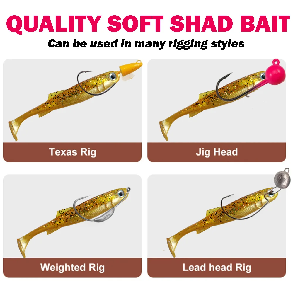5 uds Softbait Shad Swimbait 7,5cm10cm12,5cm aparejos de pesca de agua salada señuelo de gusano Artificial lubina trucha Lucio negro pececillo