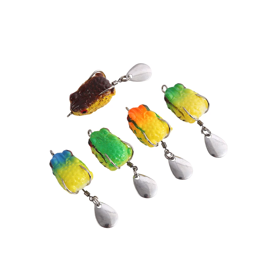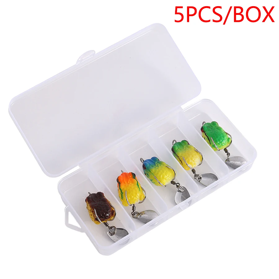 5 uds superficie flotante rana Swimbait para pez negro lubina Pike Trolling Señuelos de Pesca Set lentejuelas anzuelos dobles cebo Artificial