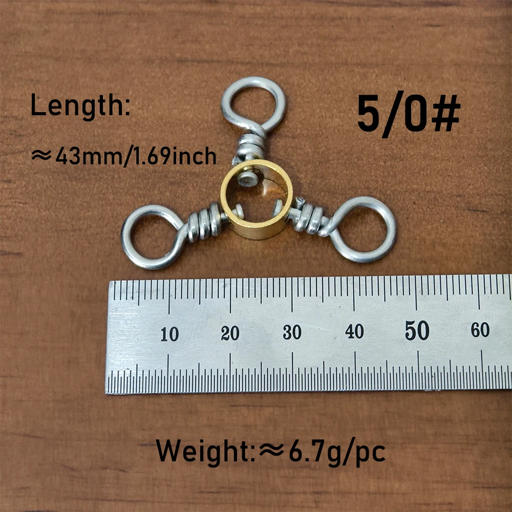 5 uds tamaño 5/0 pesca 3 vías giratorias pesca en el mar barril grande triple giratorios anzuelo señuelo aparejos conector accesorio