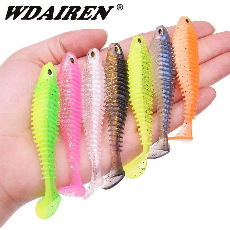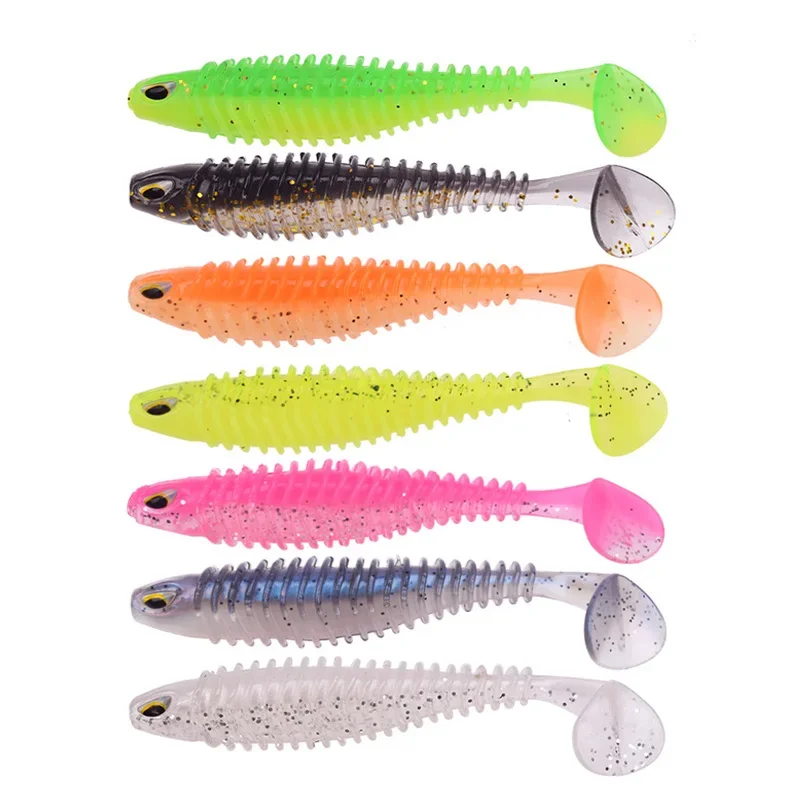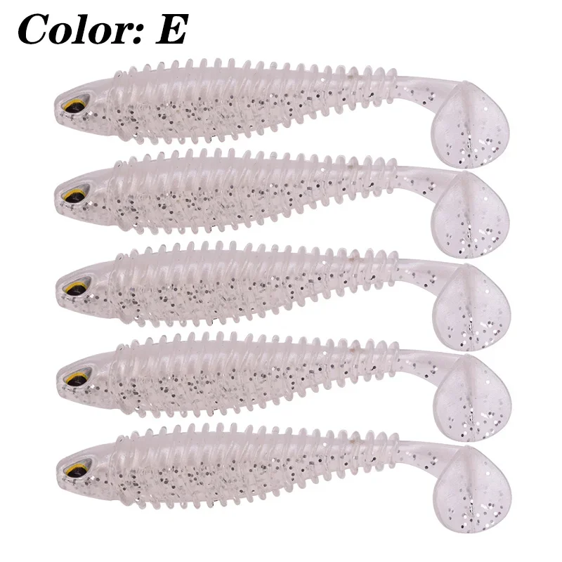 5 uds anzuelo abierto de silicona cebo suave 8cm 4.5g doble Color cola en T señuelo de pesca Artificial Swimbait agua dulce aparejos de agua de mar