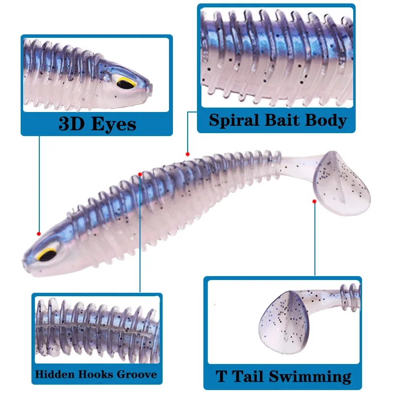Tipo de señuelo: Cebo suave con cola en T de silicona para ojos 3D