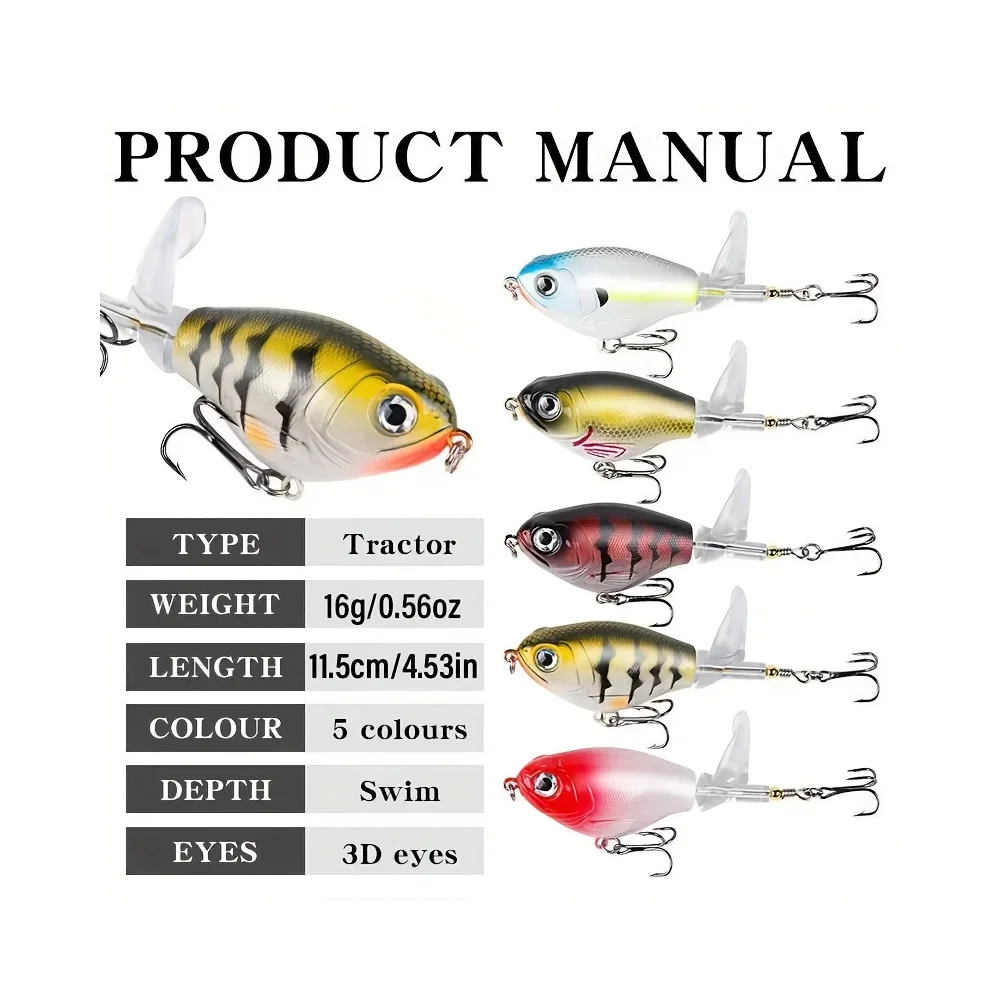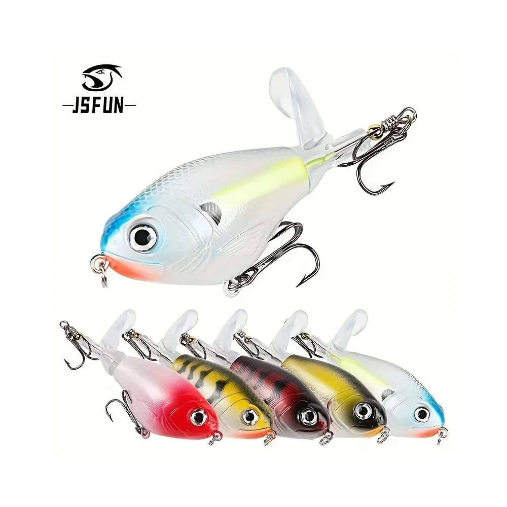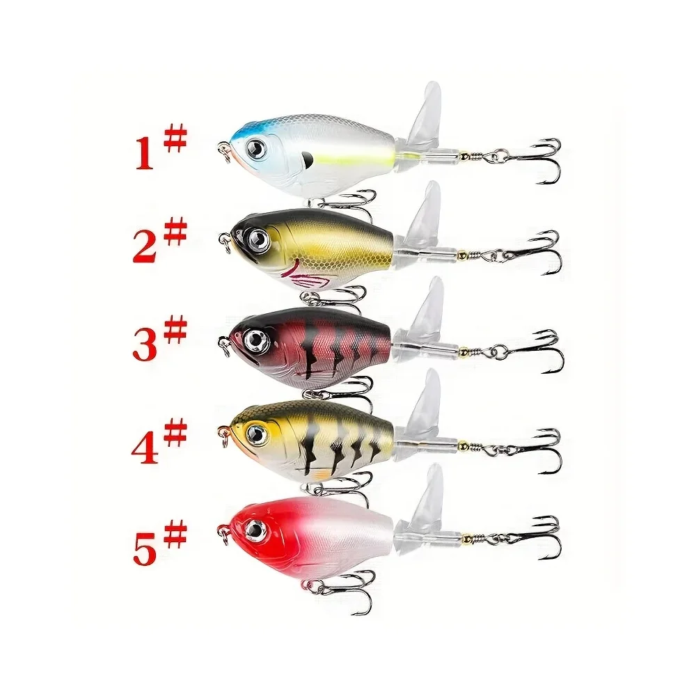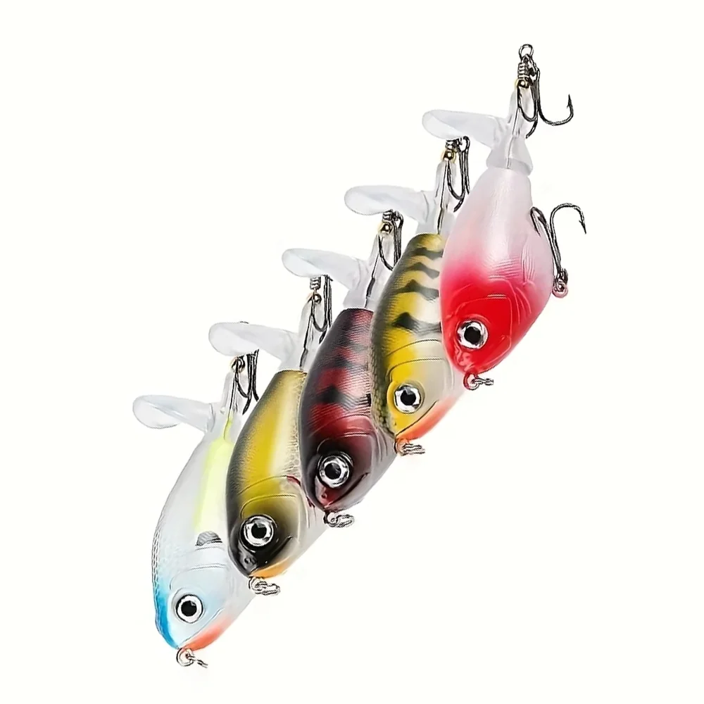 Señuelos de pesca Whopper Popper, hélice giratoria, cebo Artificial flotante Wobblers, cebo de pesca para trucha, lubina, pez negro, 5 uds.