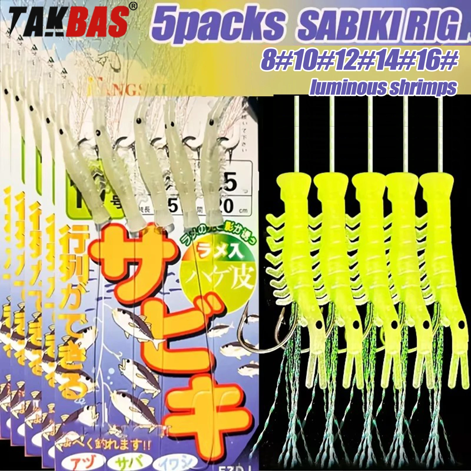 TAMAÑO 16# (El tamaño de anzuelo más grande), 5 paquetes, cada paquete incluye 5 camarones con anzuelos bien aparejados, cuentas brillantes en la parte inferior de los anzuelos y giran en el extremo del hilo de pescar.
