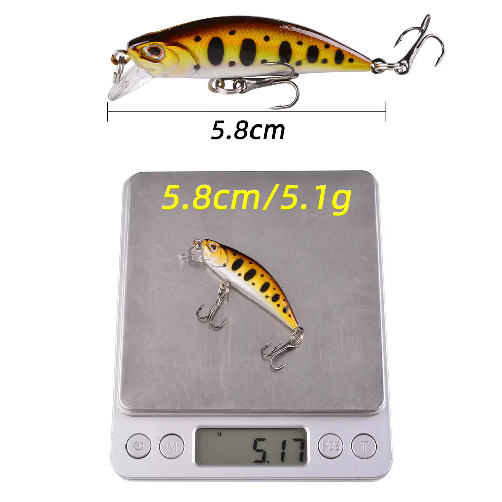 5 unidades de Mini señuelo pececillo que se hunde de 58mm, Wobbler de Pesca de fundición larga para Lucio, trucha, cebo duro Artificial de agua dulce, equipo de Pesca