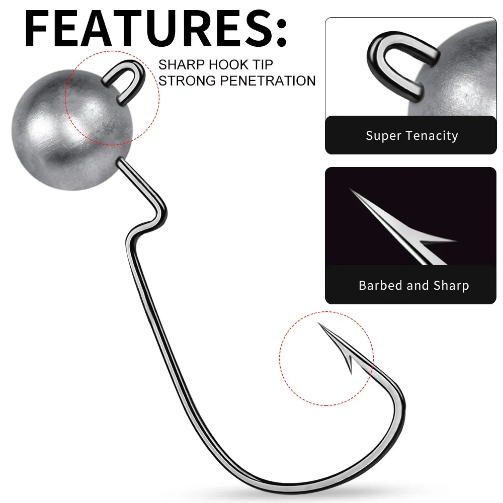 5 unids/bolsa 3,5g-10g cabeza de anzuelo de pesca con púas bola redonda anzuelos de pesca Jigging de acero alto en carbono para señuelo suave gusano
