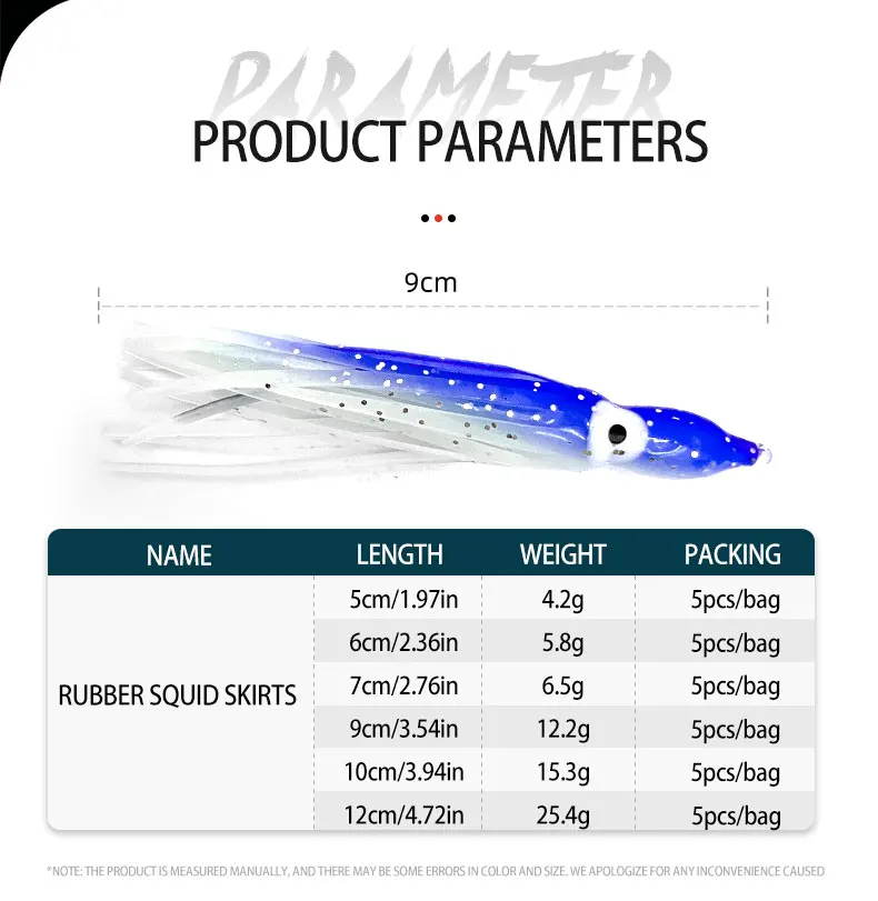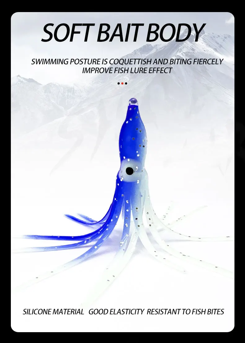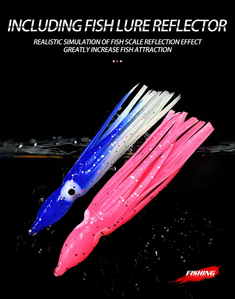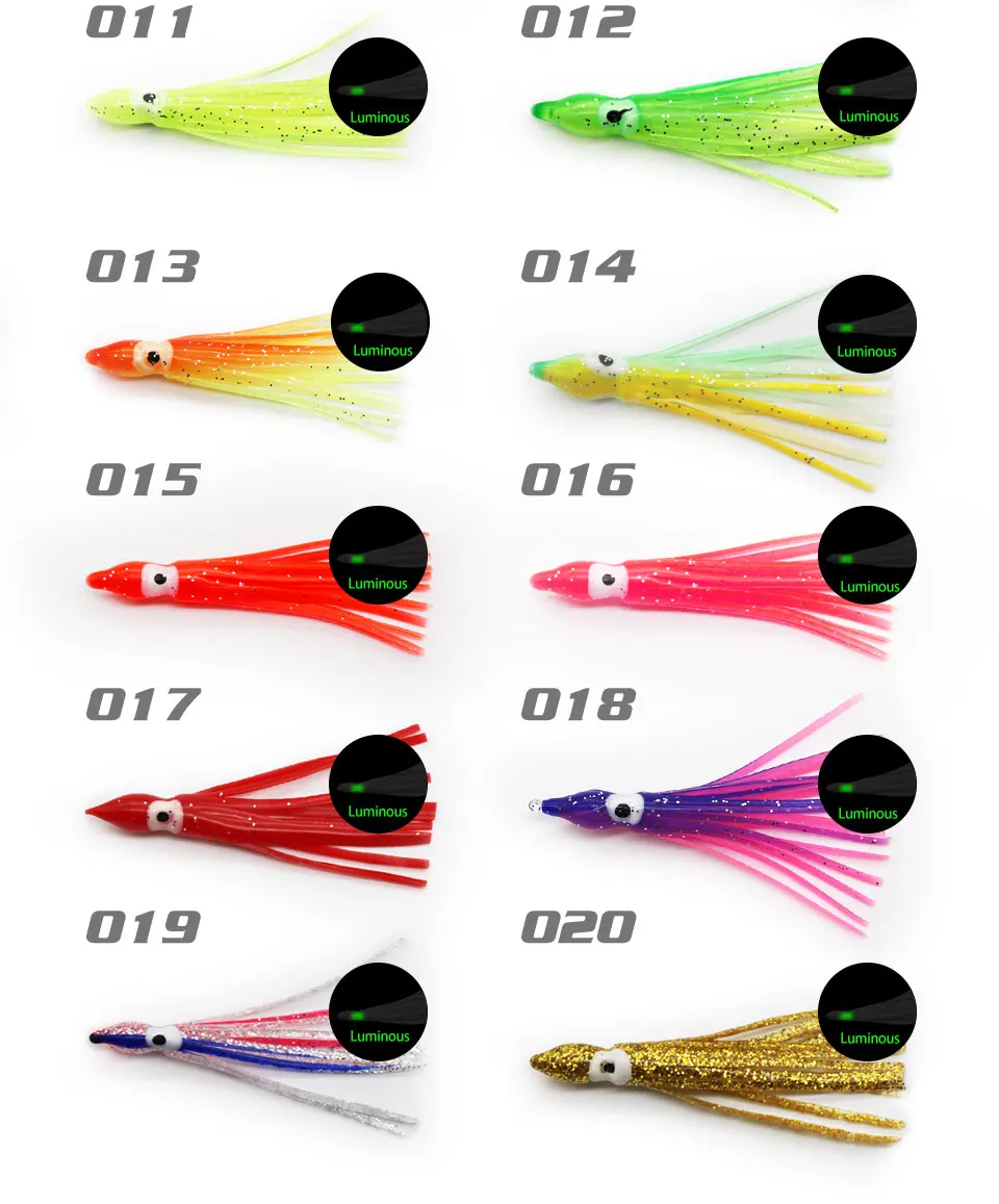 5 unids/bolsa de calamar brillante para pescar, hisoochies de goma suave, falda de calamar de pulpo, cebo de agua de mar para atún lubino