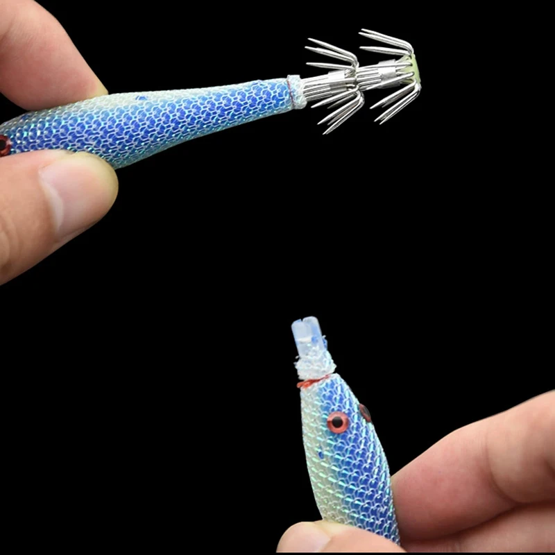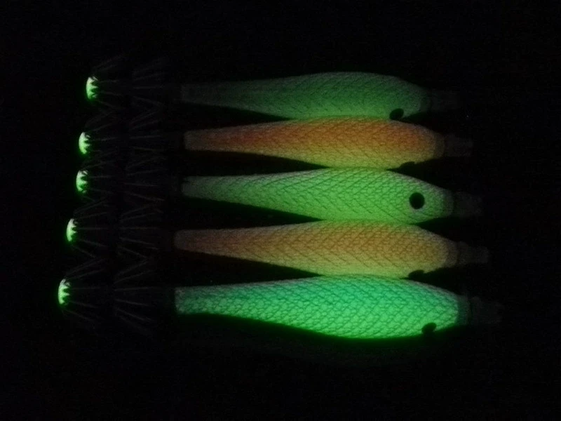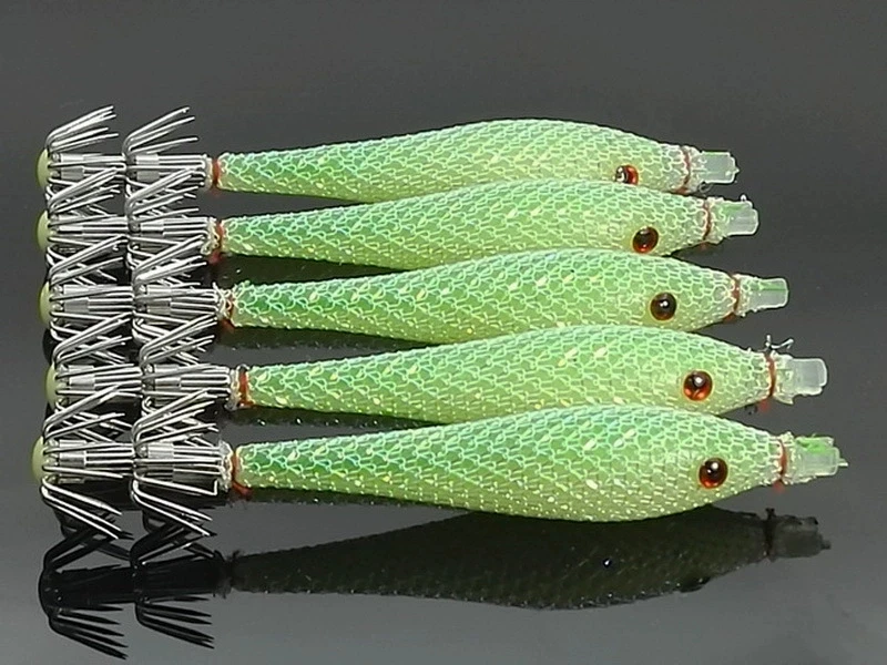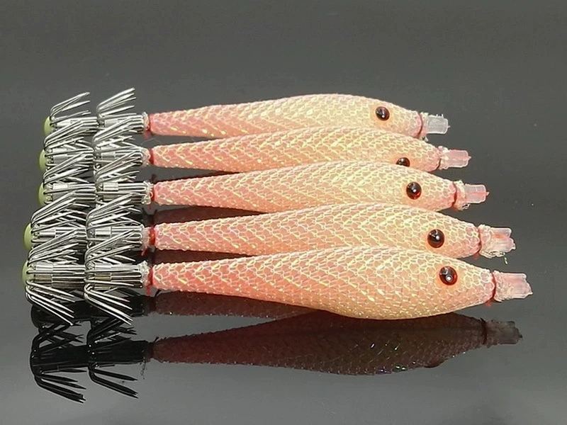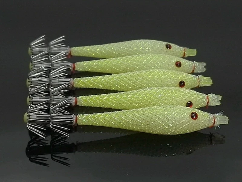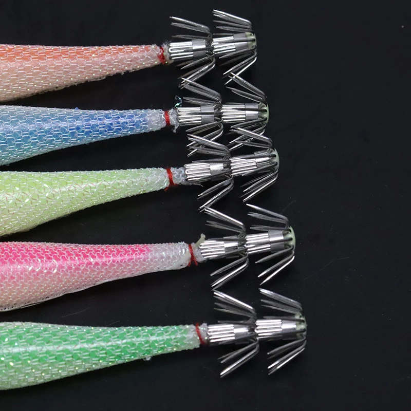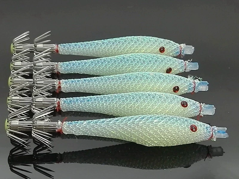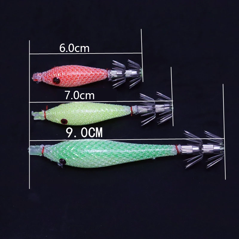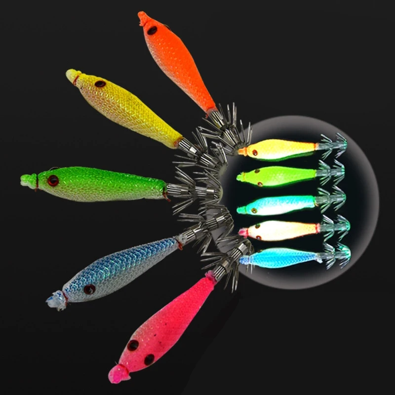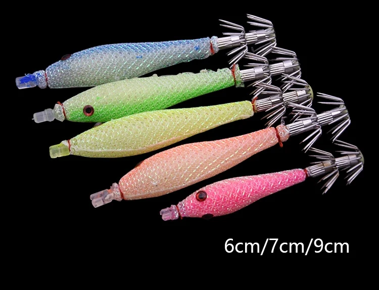 5 unids/bolsa 6cm7cm9cm Señuelos de pesca fluorescentes artificiales anzuelo de calamar plantillas de sepia cebo Spinnerbait camarones de madera pesca en el mar