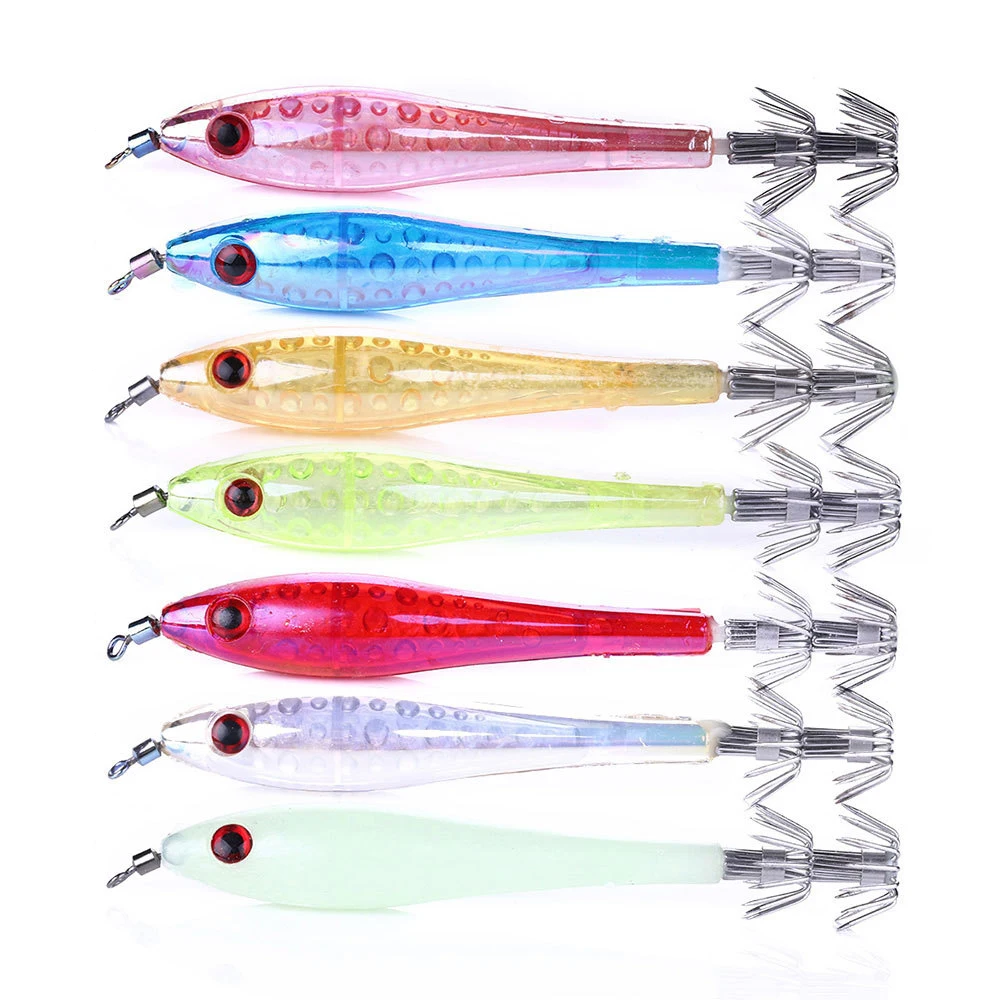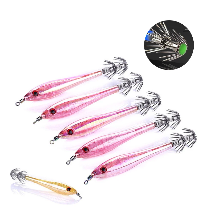 5 unids/bolsa 9 cm/6g señuelo de calamar plantillas doble paraguas gancho pesca en agua salada pulpo Artificial sepia cebo peaca anzuelo de pesca