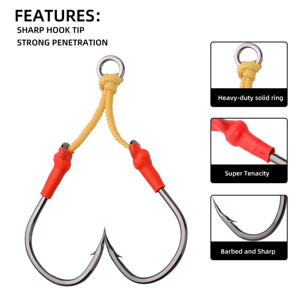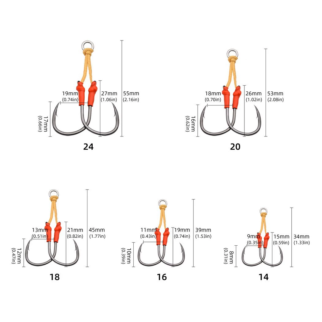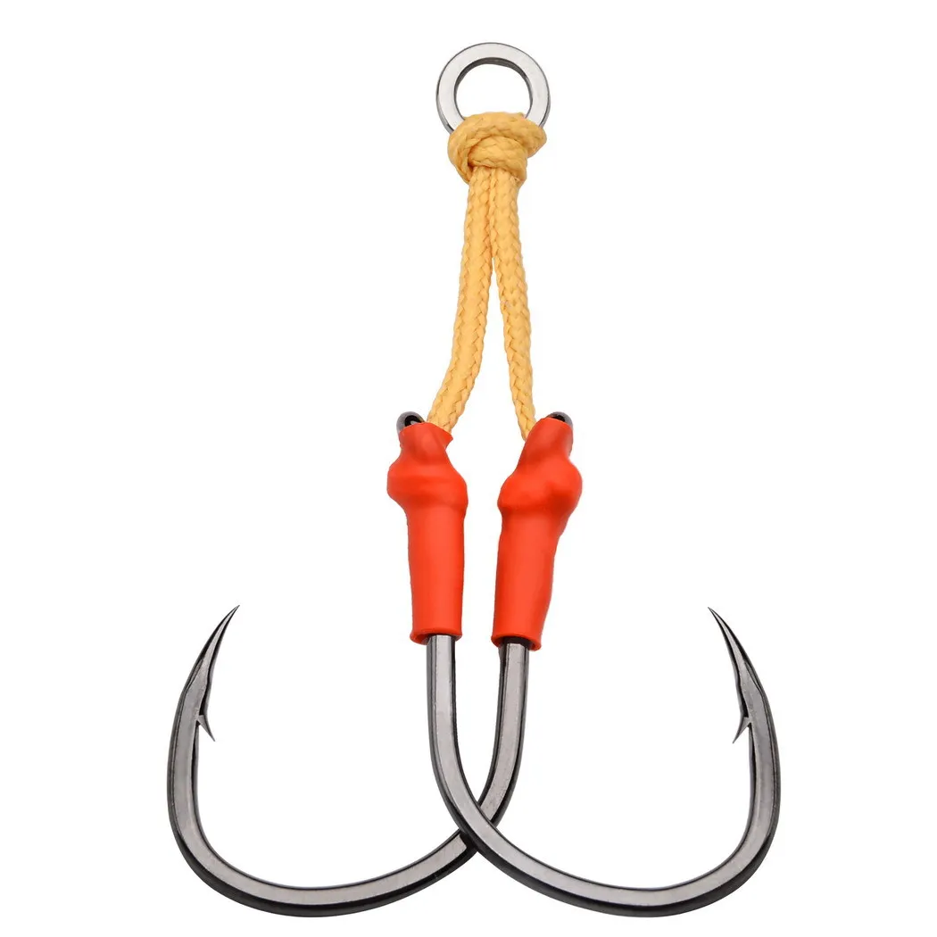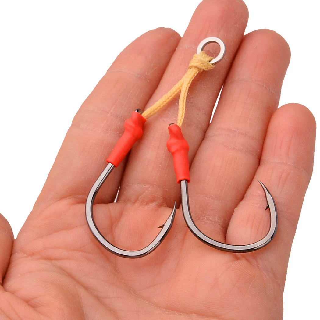 5 unids/bolsa doble único gancho lento de acero al carbono anzuelo de pesca de mar pesca de agua salada anzuelos de ayuda de Jigging de Metal