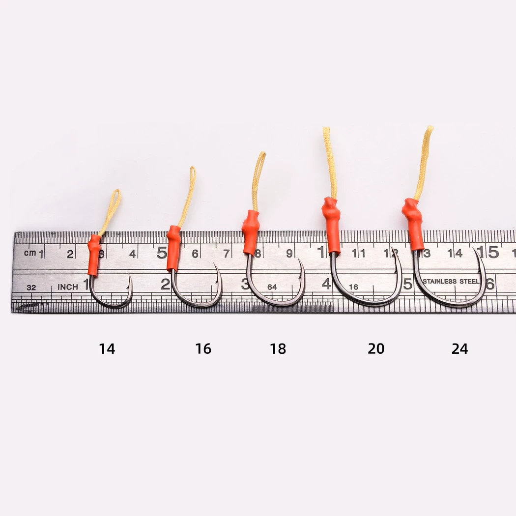 Anzuelo de Pesca luminoso con púas de acero al carbono, accesorios de Pesca noctilucentes, forma anular inoxidable, 9 #-18 #, 10 unids/lote por caja
