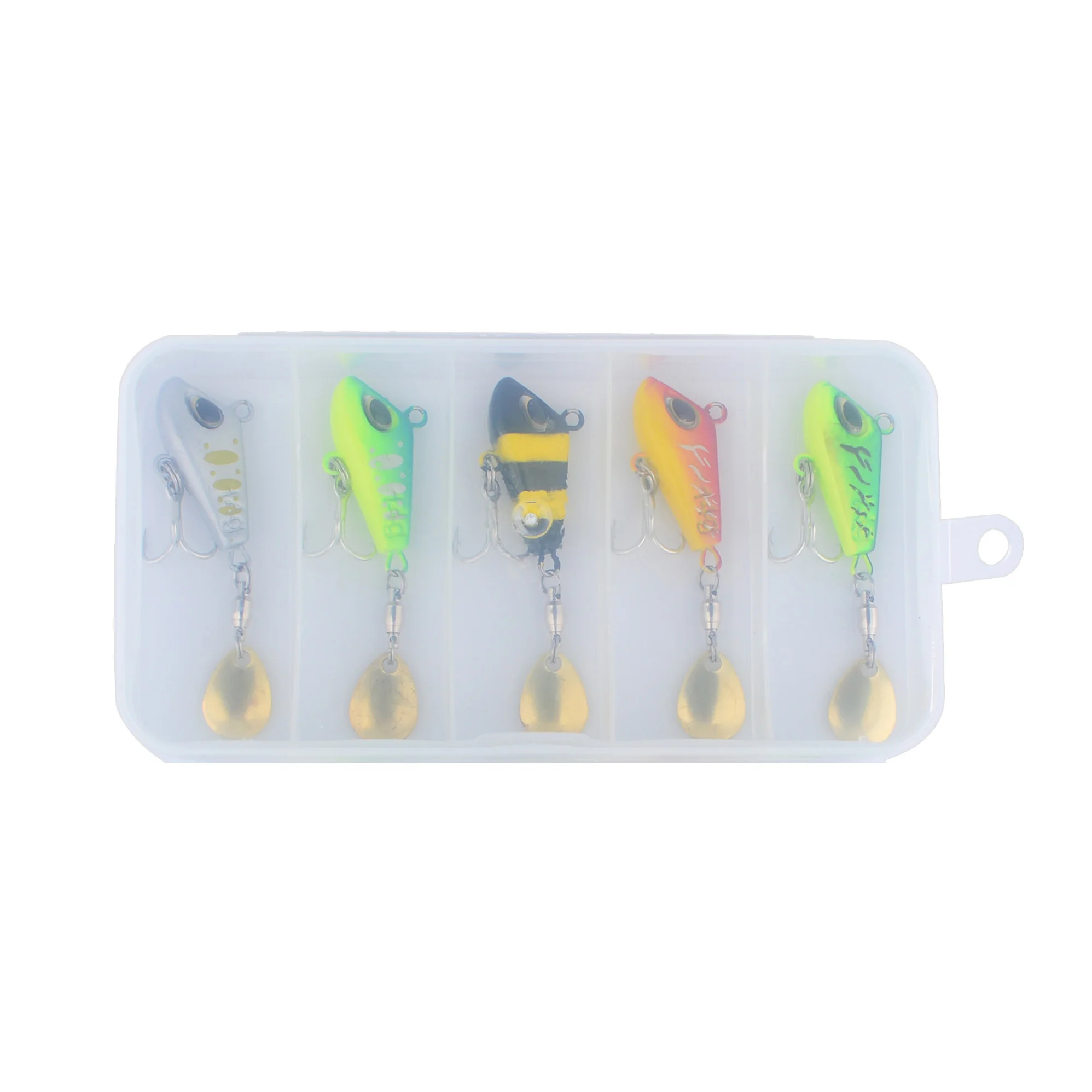 5 unids/caja cebo giratorio VIB cuchara plantilla de Metal pesca vibración aparejos hoja pesca giratoria señuelo equipo Spinnerbait