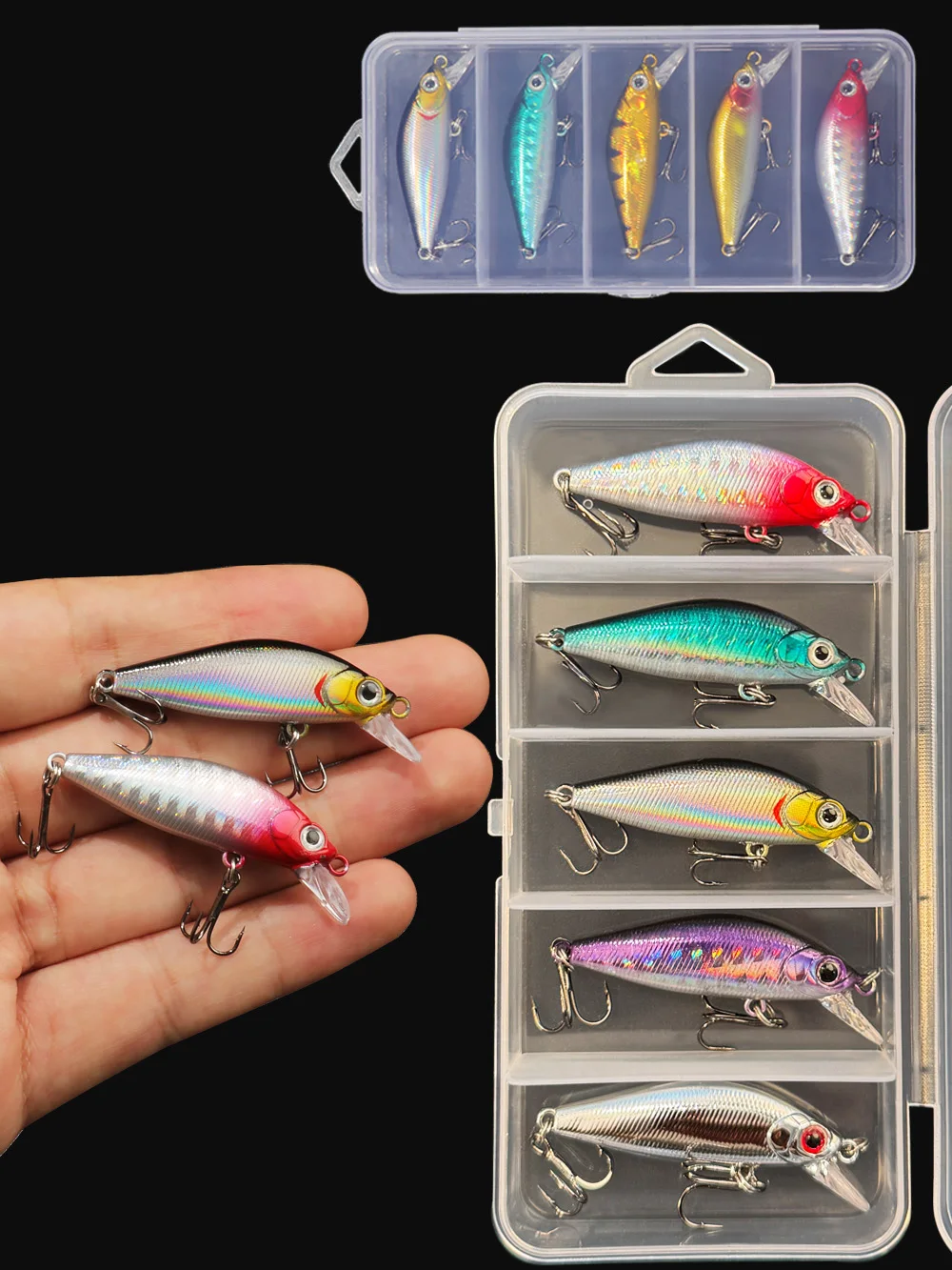 5 señuelos de pesca.