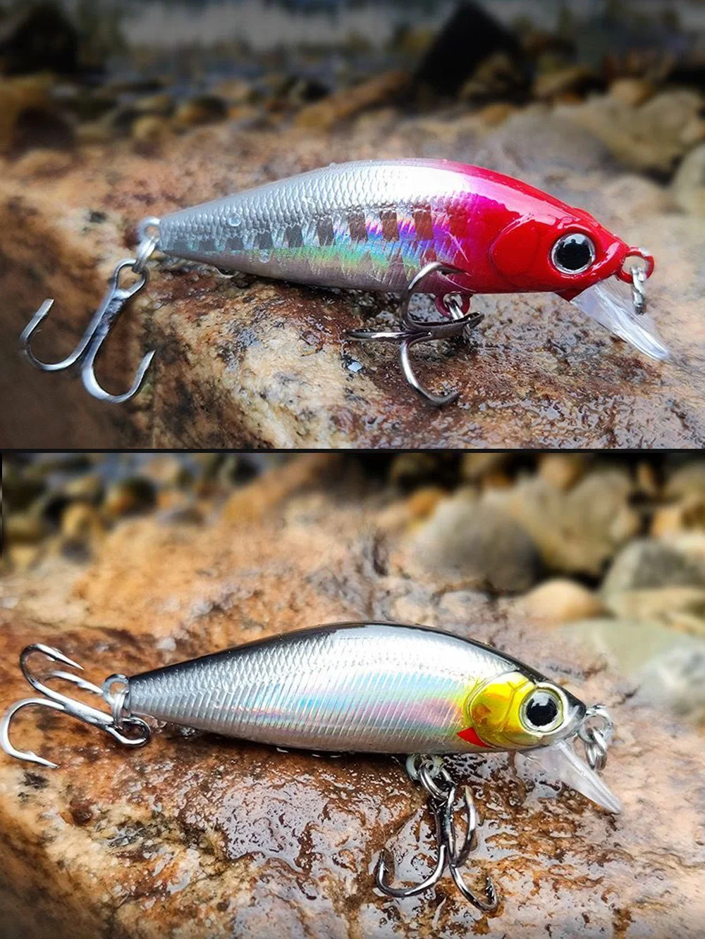 1. Ganchos triples fuertes, que están armados con ganchos GOBAIT, mayor potencia, duradero, agua de mar dulce universal.