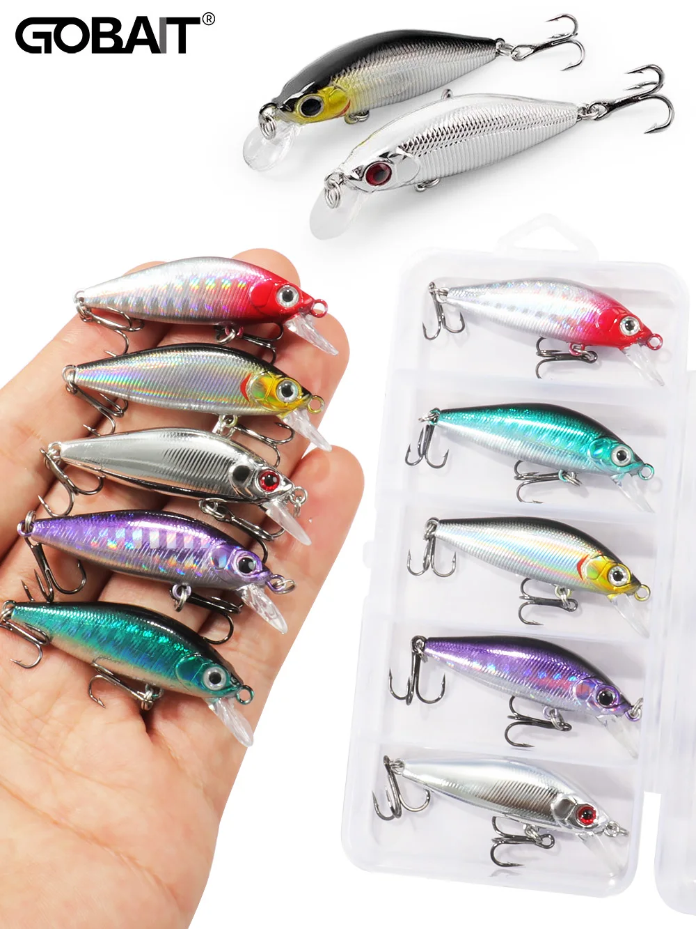 GOBAT 5 uds Kit de señuelos hundimiento Minnow trucha cebo Artificial manivela cebos lubina Wobbler caja de aparejos flotante Jerkbait Popper anzuelo de agua salada Swimbait Pesca Plopper largo fundido Whopper pesca en el mar Crankbait anzuelos triples engranaje de pescador cebo de silicona