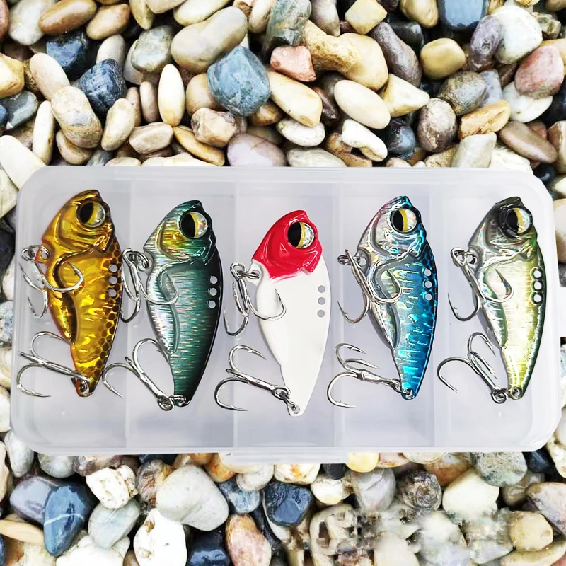 5 unids/caja Metal hundimiento sin labios Crankbait hoja VIB 5g 9g 12g cigarra Wobblers cebos aparejos para lubina perca Señuelos de Pesca