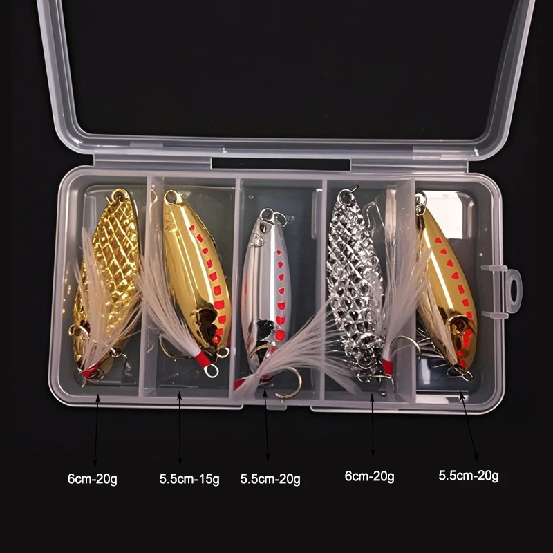 5 unids/caja Metal Vib sanguijuela Spinners cuchara señuelos 15g 20g cebo Artificial señuelo aparejos de pesca para Lucio
