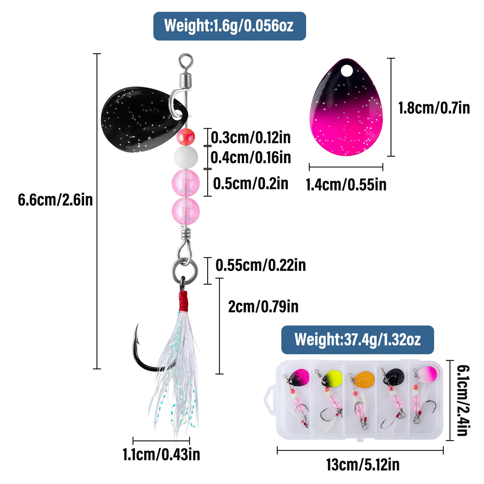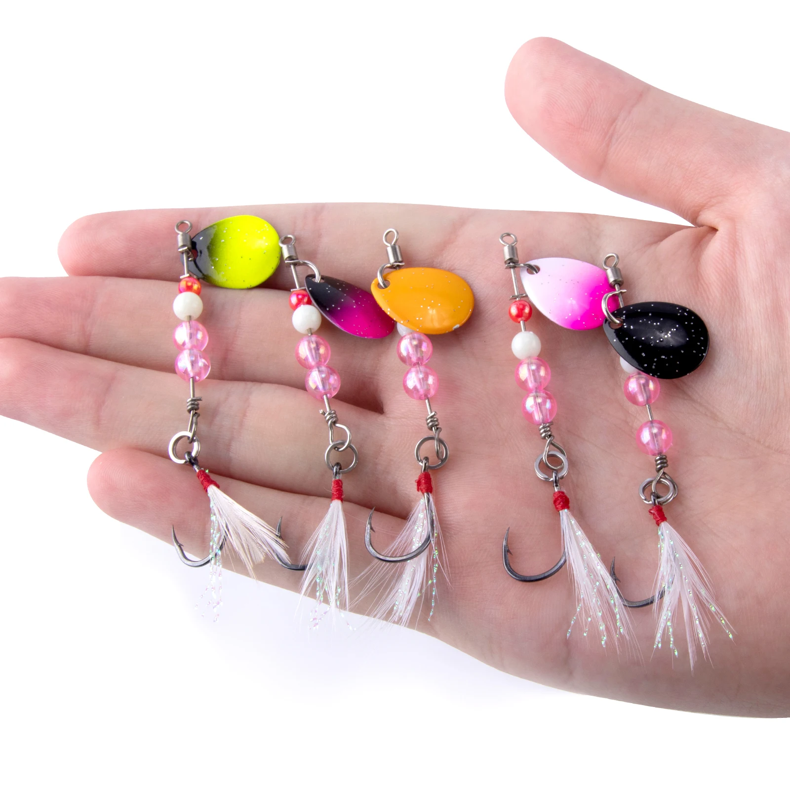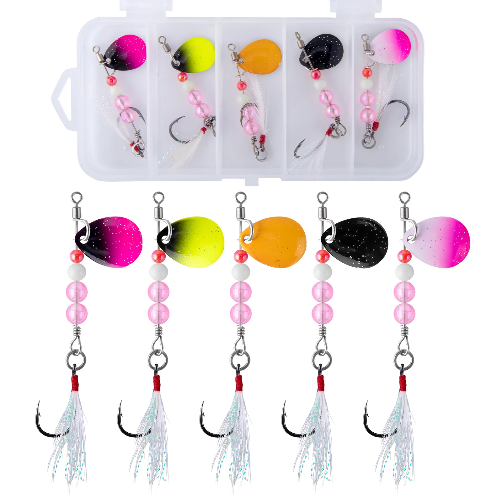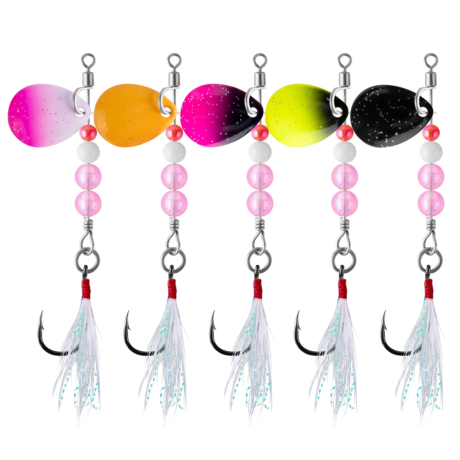 Paquete económico de 5 piezas: incluye 5 señuelos giratorios de alta calidad en colores variados, lo que le brinda opciones versátiles para diferentes condiciones del agua.