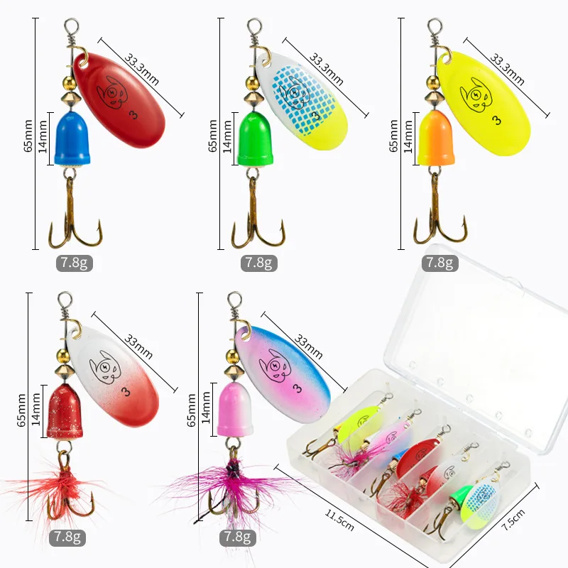 Diseño versátil: estos spinnerbaits cuentan con un diseño único y versátil que imita una variedad de presas, lo que los hace eficaces para capturar una amplia gama de especies de peces de agua dulce.Los diferentes tamaños y colores disponibles le permiten combinar los spinnerbaits con sus condiciones de pesca y especies objetivo específicas.