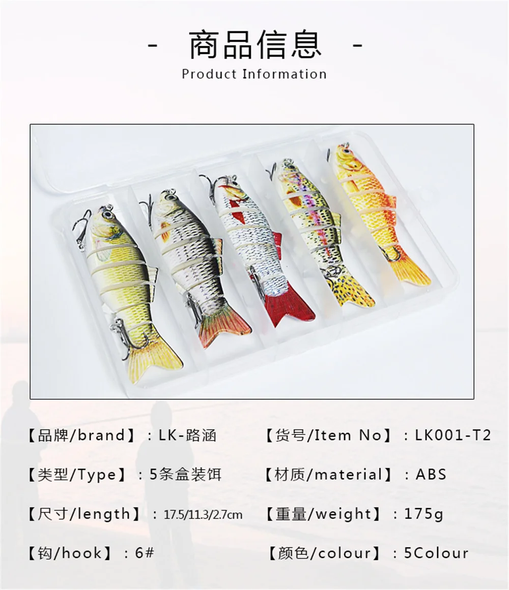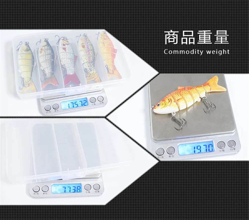 5 unids/caja Wobblers que se hunden 6 segmentos Señuelos de pesca multiarticulados Swimbait cebo duro aparejos de pesca para lubina Isca Crankbait