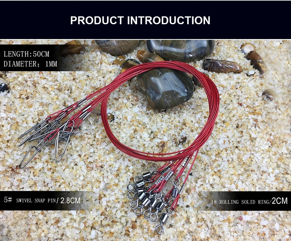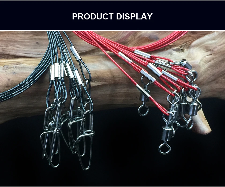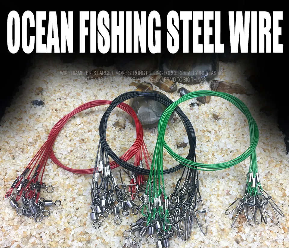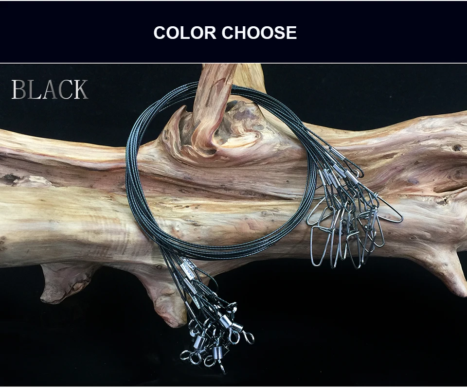 5 unids/lote 50cm hilo de pescar antimordida líder de alambre de acero con accesorio de pesca giratorio negro/verde Olta correa de núcleo de plomo agua salada