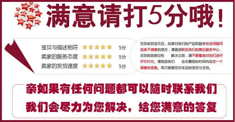 3. Nota de firma: cuando reciba el paquete, no se apresure a firmar el recibo, abra la inspección puntual frente al mensajero, si el bebé está dañado o falta la cantidad, ¡rechacelo!Y comuníquese con el comerciante en el acto (hay un número de contacto en la lista de mensajería).Una vez firmado, significa que usted aprova la cantidad e integridad de la mercancía, ¡el comerciante no podrá reclamar compensación a la empresa de mensajería para los compradores!¡También perdone nuestra tienda ya no asumirá la pérdida causada por el contenido de los productos, la falta o el daño!¡Contáctanos a tiempo después de recibir el artículo!El comerciante y el comprador resuelven el problema juntos.¡Deje que el comprador quede satisfecho y regrese!