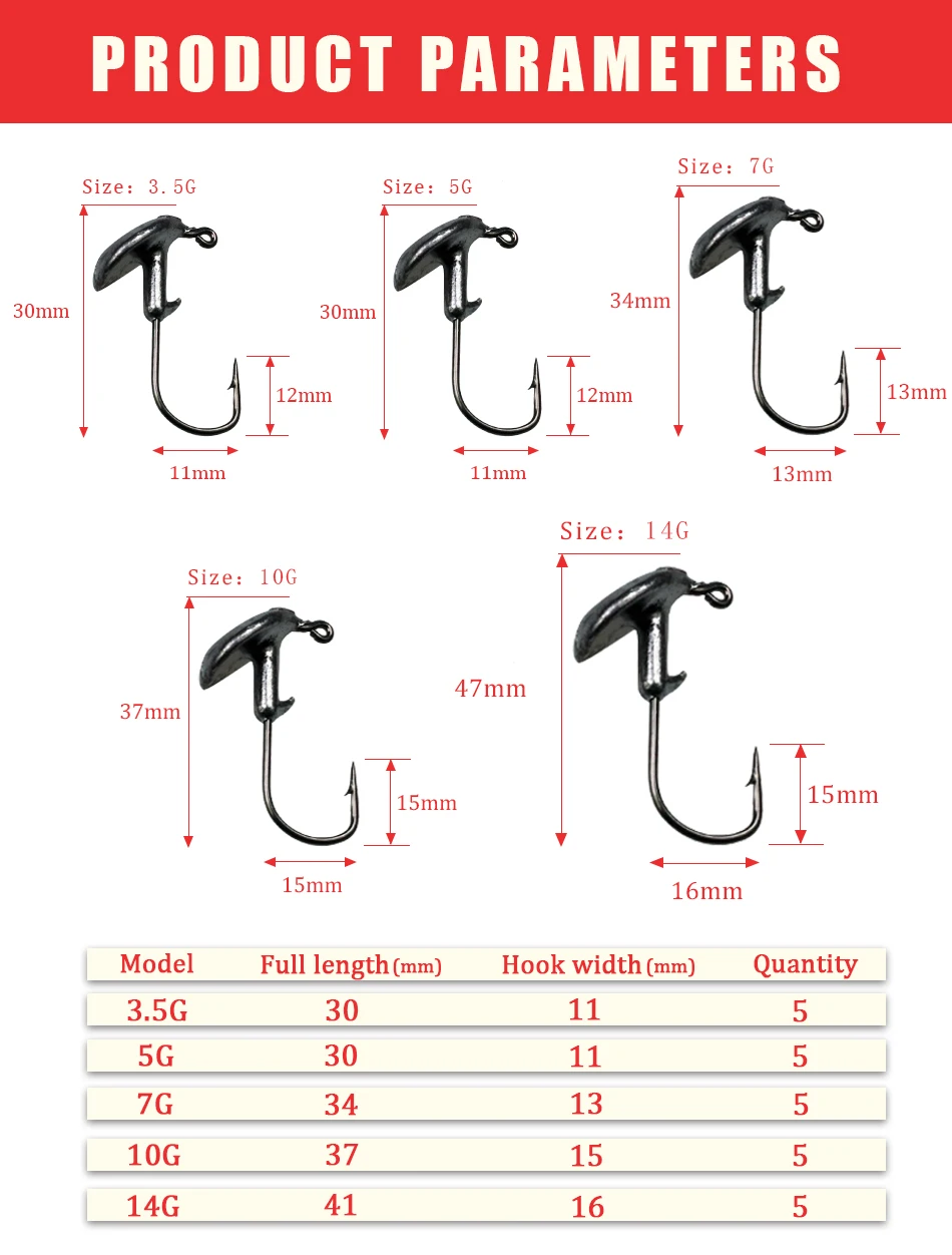 【Package Included】Packge with jig heads,5pcs each pack. weigth: 5g/14g 0.17/0.49oz.