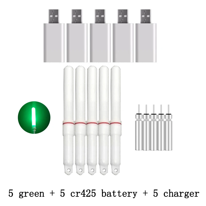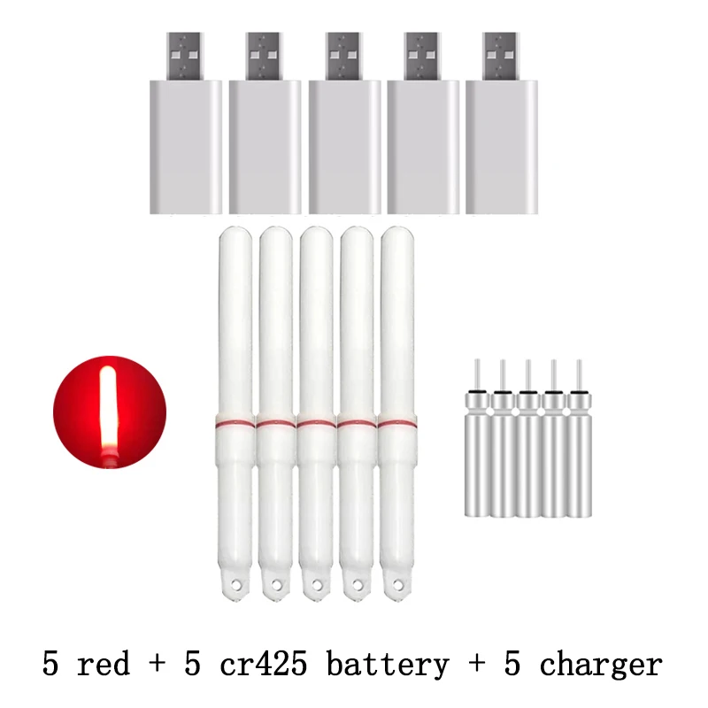 5 unids/lote barra luminosa con 5 baterías recargables cr425 y cargador palo de luz LED accesorio de pesca nocturna lámpara atractora J532