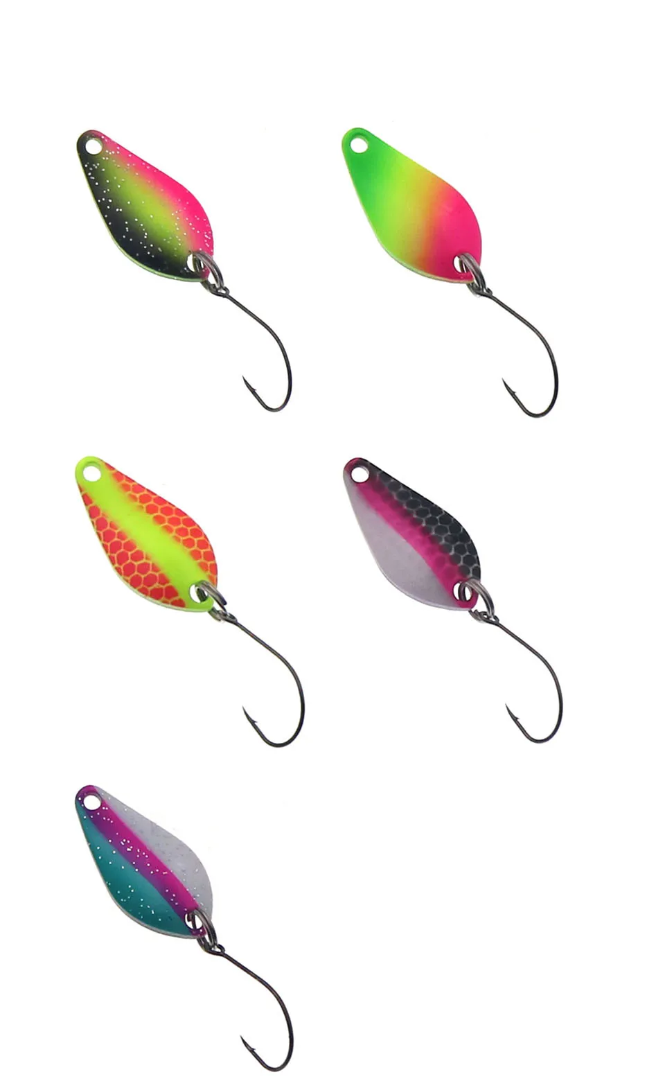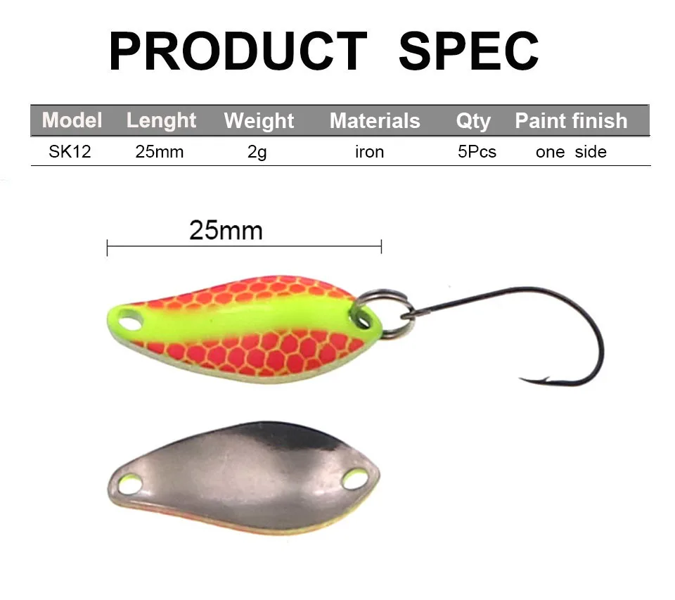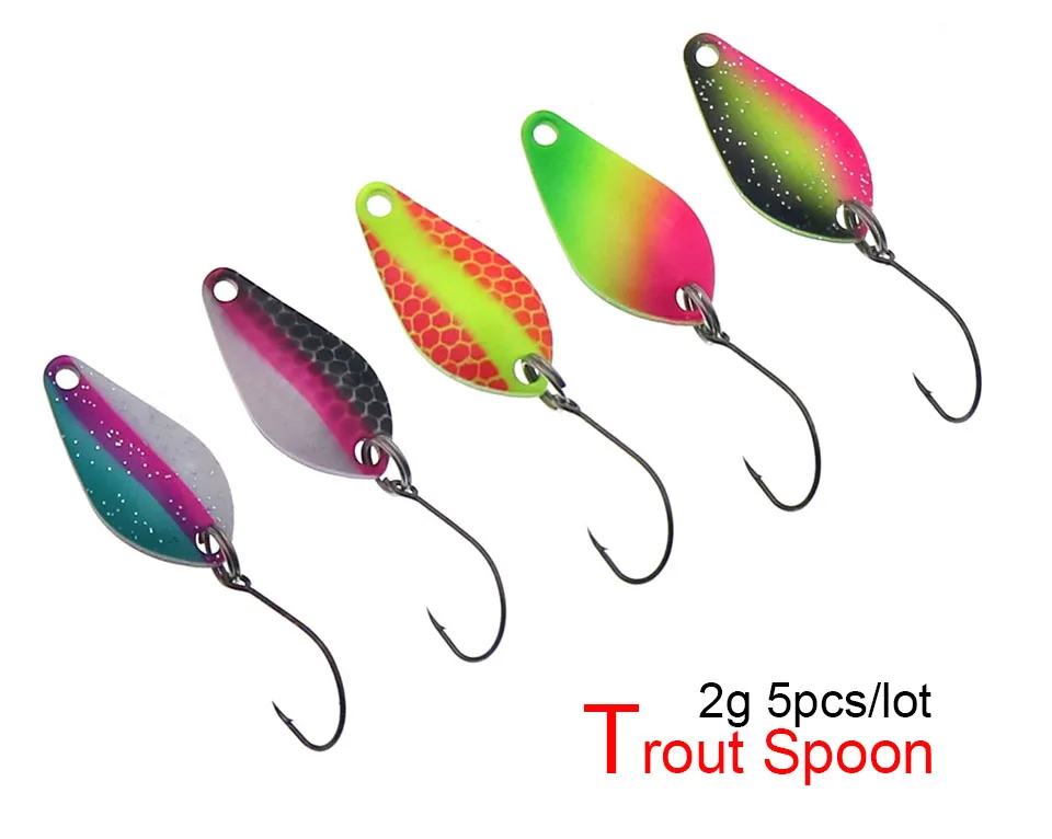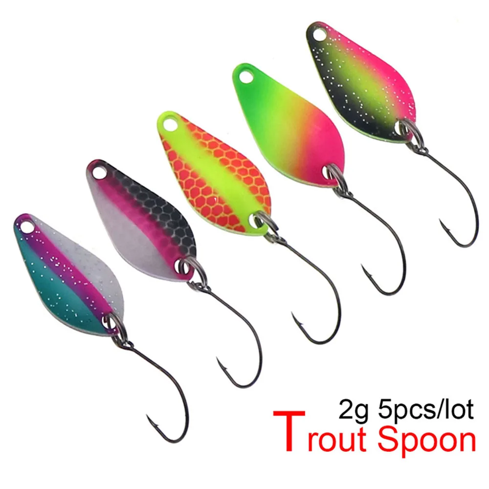 5 unids/lote cebo cuchara para trucha 2g 25mm señuelo de pesca de Metal con un solo gancho cebo duro señuelos trucha perca Chub salmón
