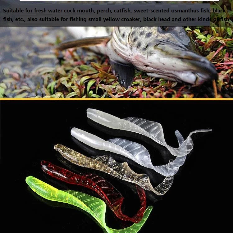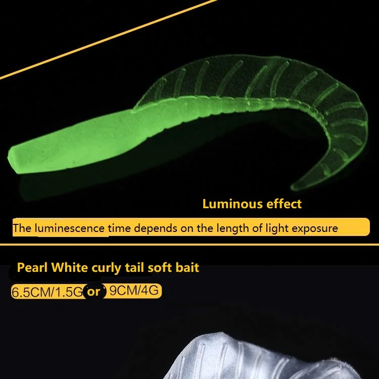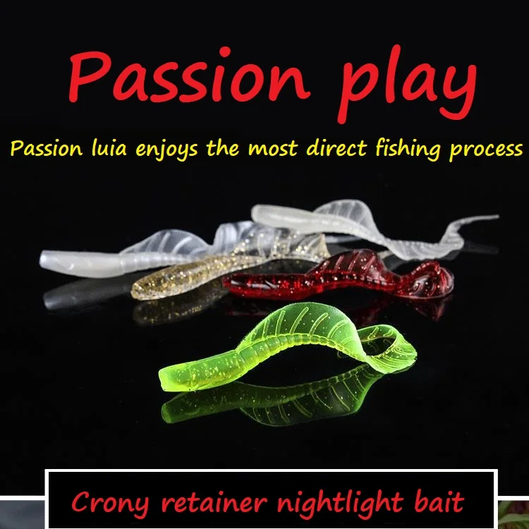 5 unids/lote cola de bobinado largo cebo suave luminoso Gel de sílice Artificial trucha Crankbait pesca gusano falda con luz nocturna cebo falso