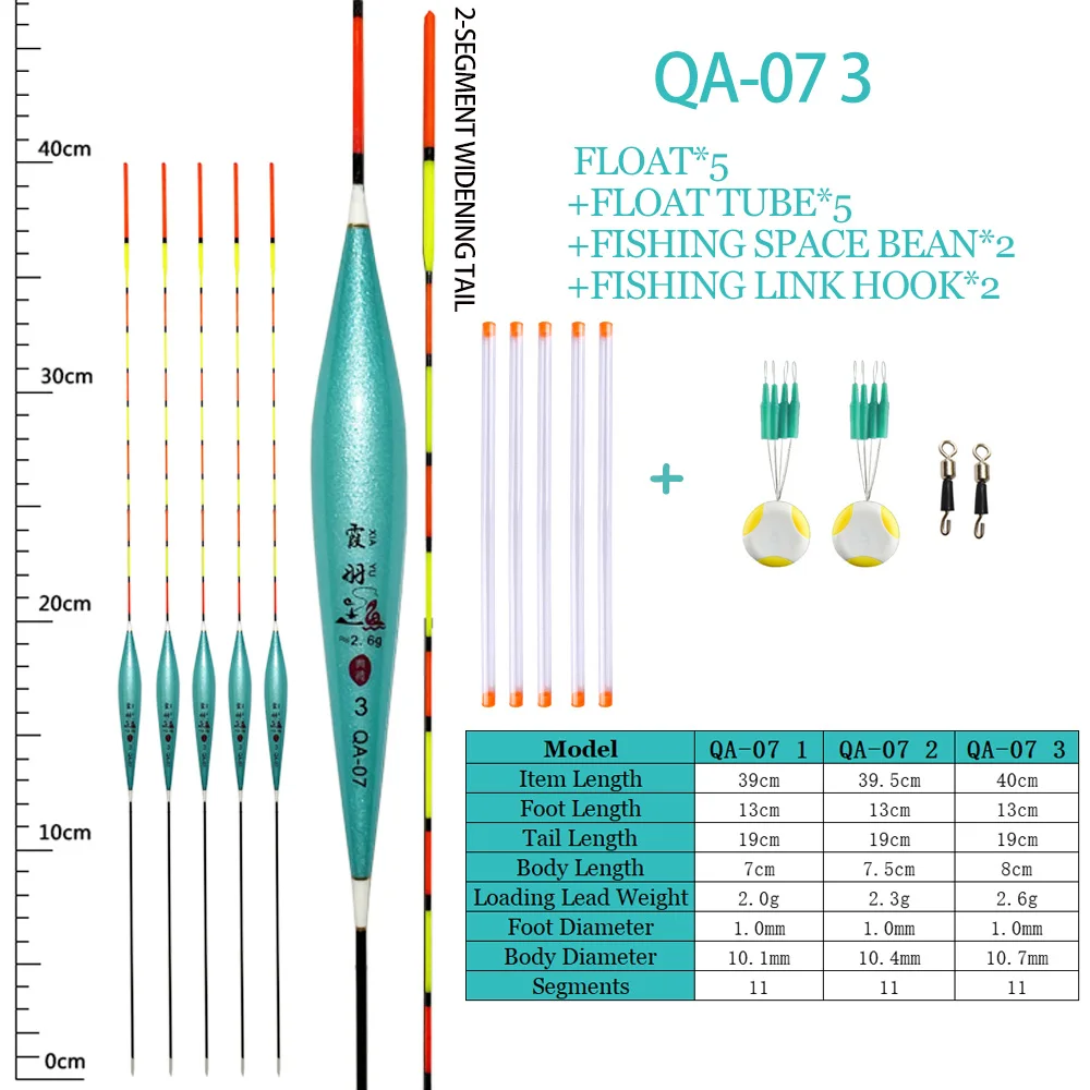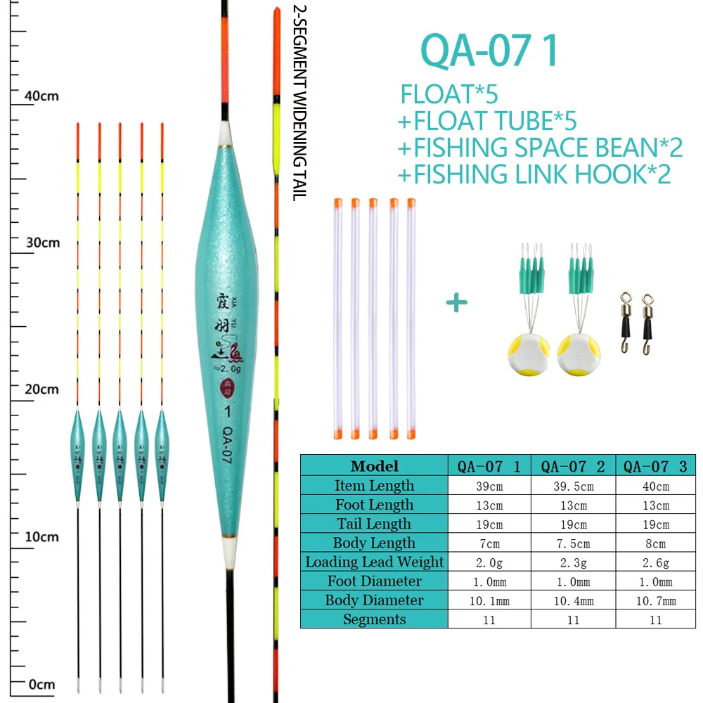Características: 1.Nuevo, variedad de modelos para opción. 2.Hecho de material de caña de alta calidad, flotabilidad estable. 3. Trajes para tipos de entornos de pesca. 4. Trajes para pescar en aguas poco profundas. 5. Adecuado para pescar especies de peces de tamaño mediano como carpa, carpa cruciana, carpa de hierba y arenque, adecuado para una profundidad de agua de 1-3 m. 6.Diseño nano audaz, adecuado para principiantes, hace que el flotador más llamativo y sin malfunción. Especificaciones: Tipo de producto: flotadores de pesca Material: Nano Material Tamaño del artículo: Modelo (Qa-07 1): Tamaño: Longitud del artículo: 39 cm, Longitud del pie: 13,0 cm, Longitud de la cola: 19,0 cm, Longitud del cuerpo: 7,0 cm, Peso del plomo de carga: 2,0 g, Diámetro del cuerpo: 10,1 mm, Diámetro del pie: 1,0 mm, Segmentos: 11 (2 segmentos Nano Head Bold) Modelo (Qa-07 2): Tamaño: Longitud del artículo: 39,5 cm, Longitud del pie: 13,0 cm, Longitud de la cola: 19,0 cm, Longitud del cuerpo: 7,5 cm, Peso del plomo de carga: 2,3 g, Diámetro del cuerpo: 10,4 mm, Diámetro del pie: 1,0 mm, Segmentos: 11 (2 segmentos Nano Head Bold) Modelo (Qa-07 3): Tamaño: Longitud del artículo: 40,0 cm, Longitud del pie: 13,0 cm, Longitud de la cola: 19,0 cm, Longitud del cuerpo: 8,0 cm, Peso del plomo de carga: 2,6 g, Diámetro del cuerpo: 10,7 mm, Diámetro del pie: 1,0 mm, Segmentos: 11 (2 segmentos Nano Head Bold) Lista de paquetes: El paquete incluye: flotador de 5 piezas + tubo flotante de 5 piezas + 2 piezas de frijol espacial de pesca + 2 piezas de anzuelo de pesca Nota: debido al hecho que el producto es puramente hecho a mano, ¡puedes ser ligeras errores entre el patrón real y la imagen principal y hay un error de 1-3 mm en el tamaño del producto!
