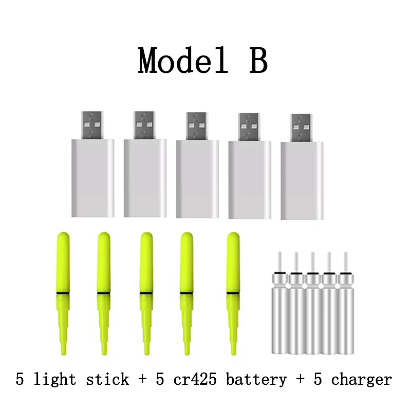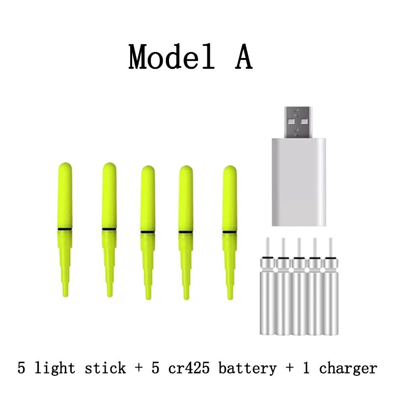 5 unids/lote palo de luz con 5 baterías recargables CR425 lámpara LED accesorio de aparejos de pesca nocturna LightStick cargador USB D021