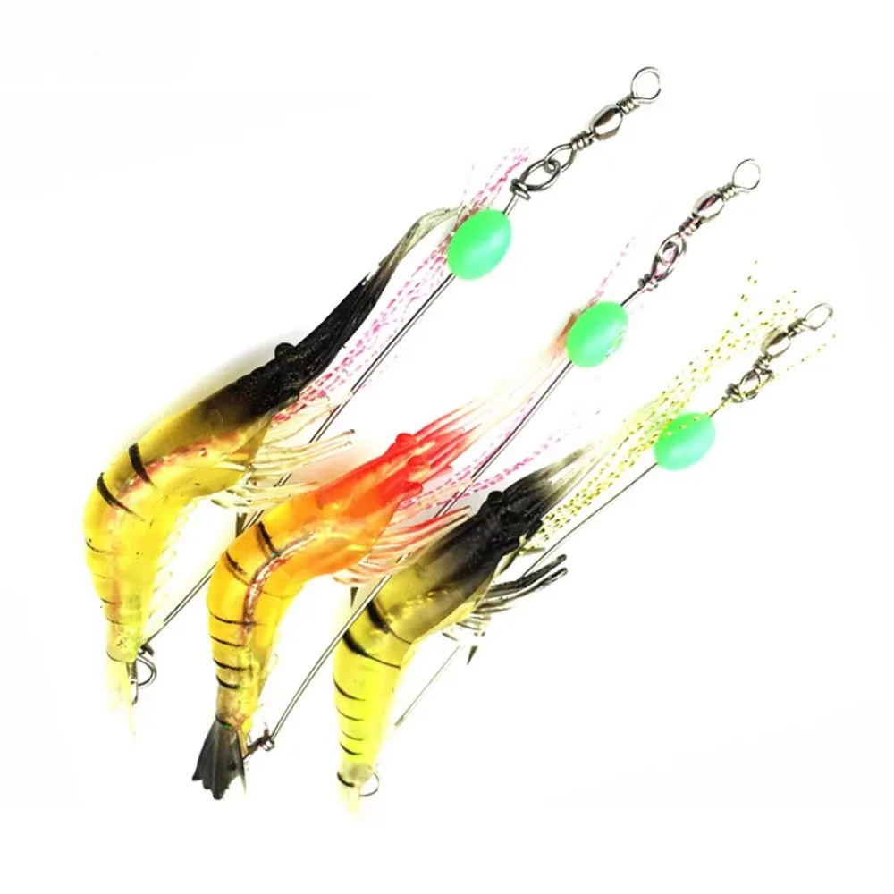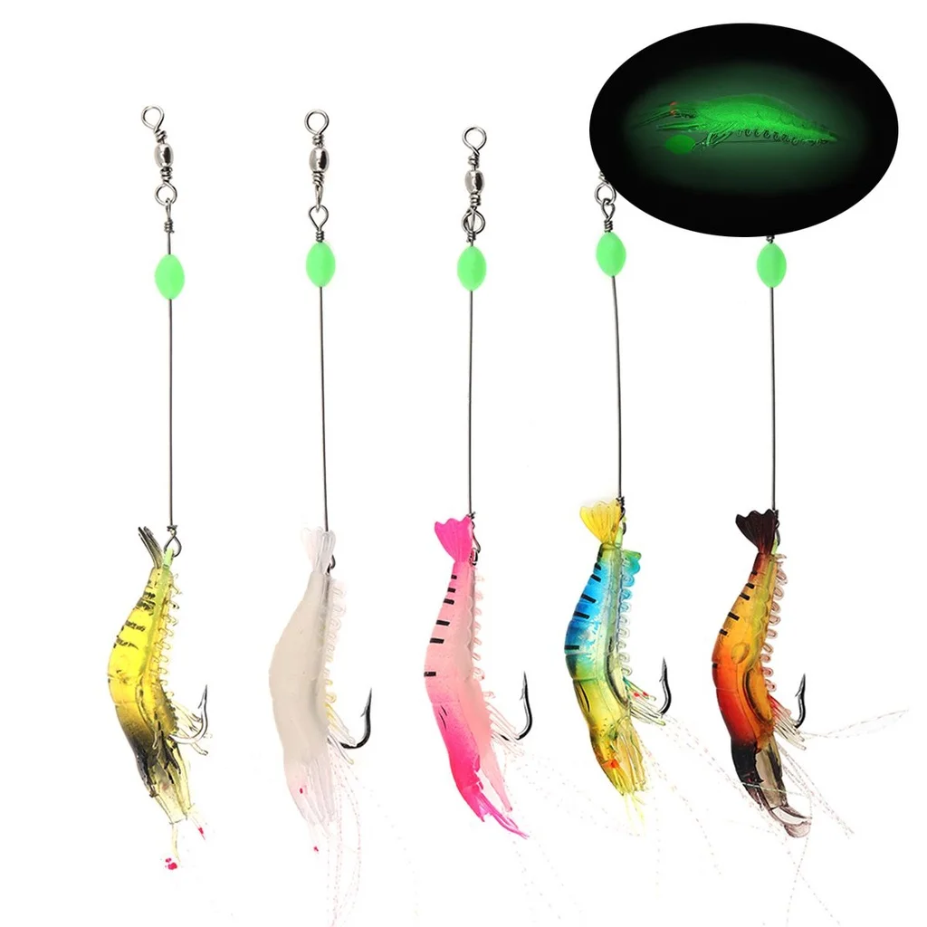 5 unids/lote señuelo suave de camarones cebo Artificial luminoso con gancho y cuentas brillantes aparejos de pesca Sabiki noctilucencia accesorios de Señuelos de Pesca