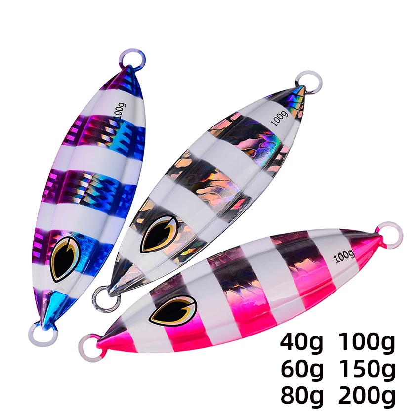 5 unids/set 40g 60g 80g 100g 150g 200g peces artificiales plantillas de Metal cuchara señuelo de pesca plantilla lenta señuelos de Jigging de mar aparejos de cuchara