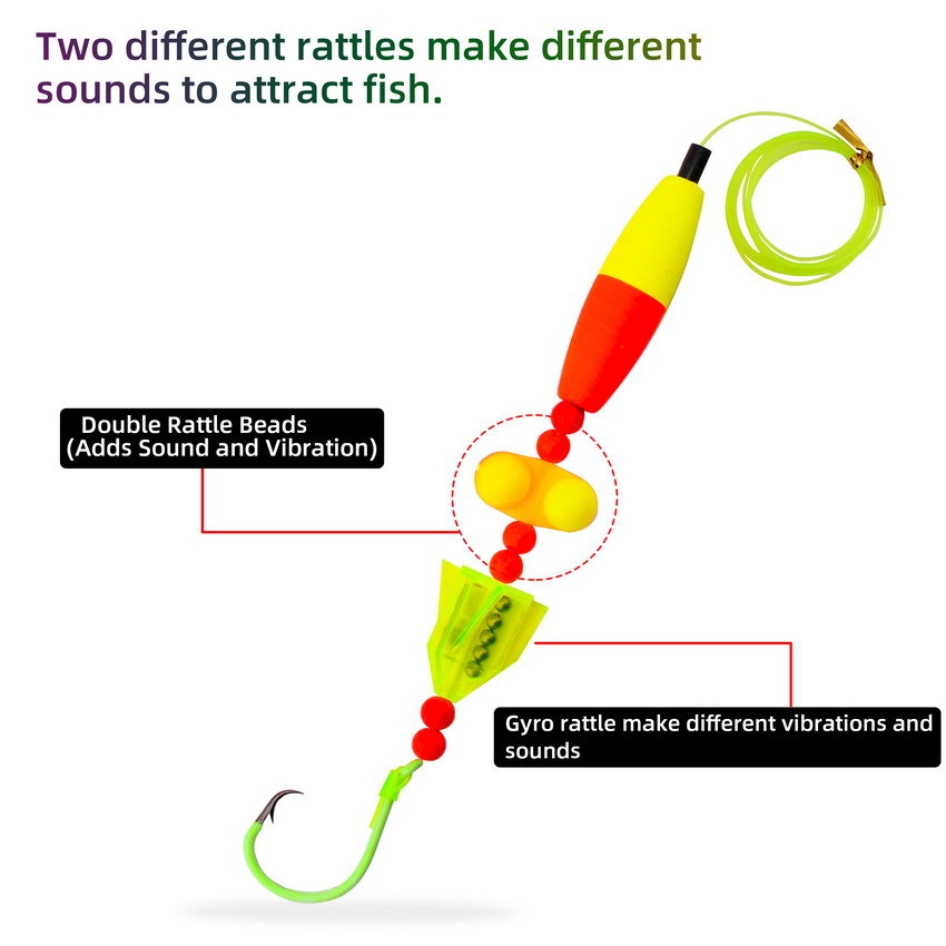 5 unids/set de aparejos de pesca de bagre, aparejos de pesca con banco, aparejos de pesca con gato, flotadores, cuentas de sonajero, aparejo con broches, anzuelos circulares 6/0 8/0 10/0