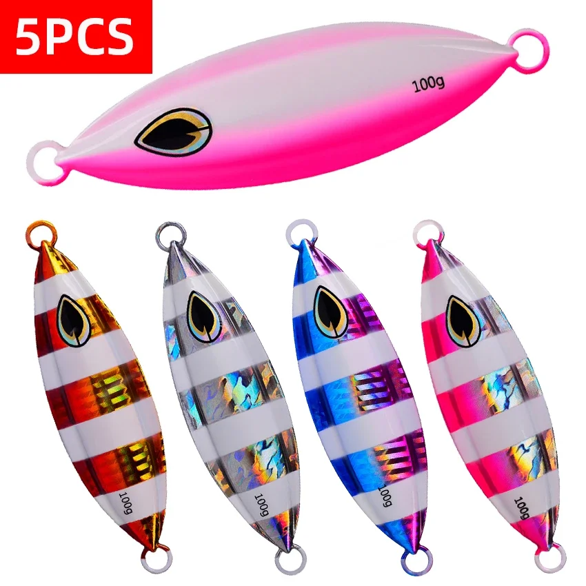 5 unids/set de cebo de pesca de plantilla lenta de Metal biónico, se hunde rápidamente para atún y lubina, disponible en tamaños de 40g,60g,80g,100g,150g y 200g