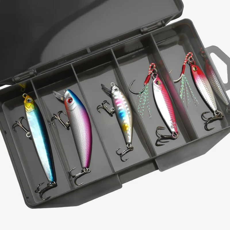 5 unids/set Kit de Señuelos de Pesca hundimiento Minnow placa de hierro lápiz trucha cebo Artificial manivela cebo aparejos de pesca de lubina con caja