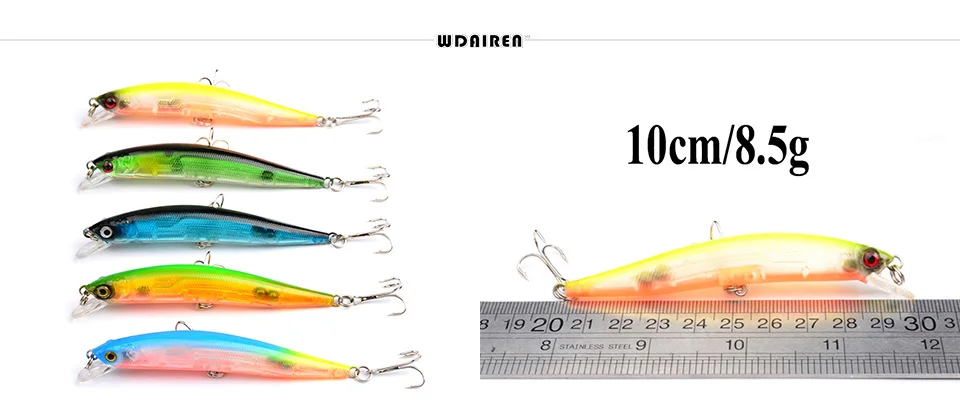 5 unids/set señuelo de pesca Minnow de colores mezclados 10cm 8,5g señuelo Wobblers de plástico flotante cebos duros artificiales para aparejos de pesca de lubina