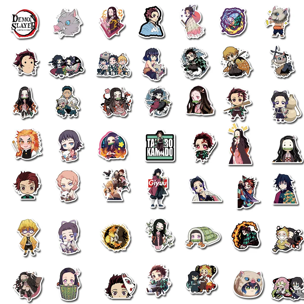 50/100/200 Uds Anime Demon Slayer pegatinas de grafiti de dibujos animados teléfono guitarra portátil maleta taza pegatina impermeable juguete para niños