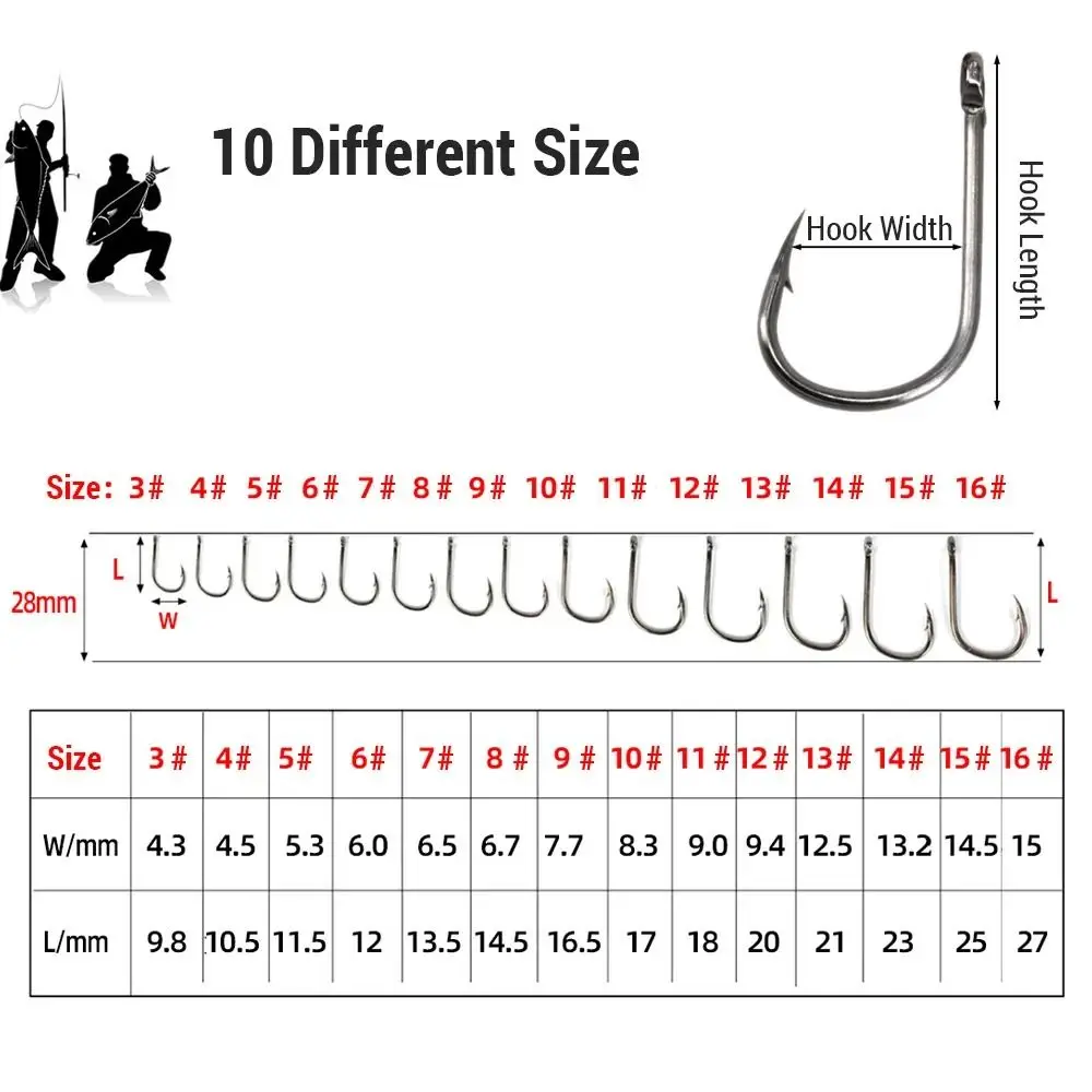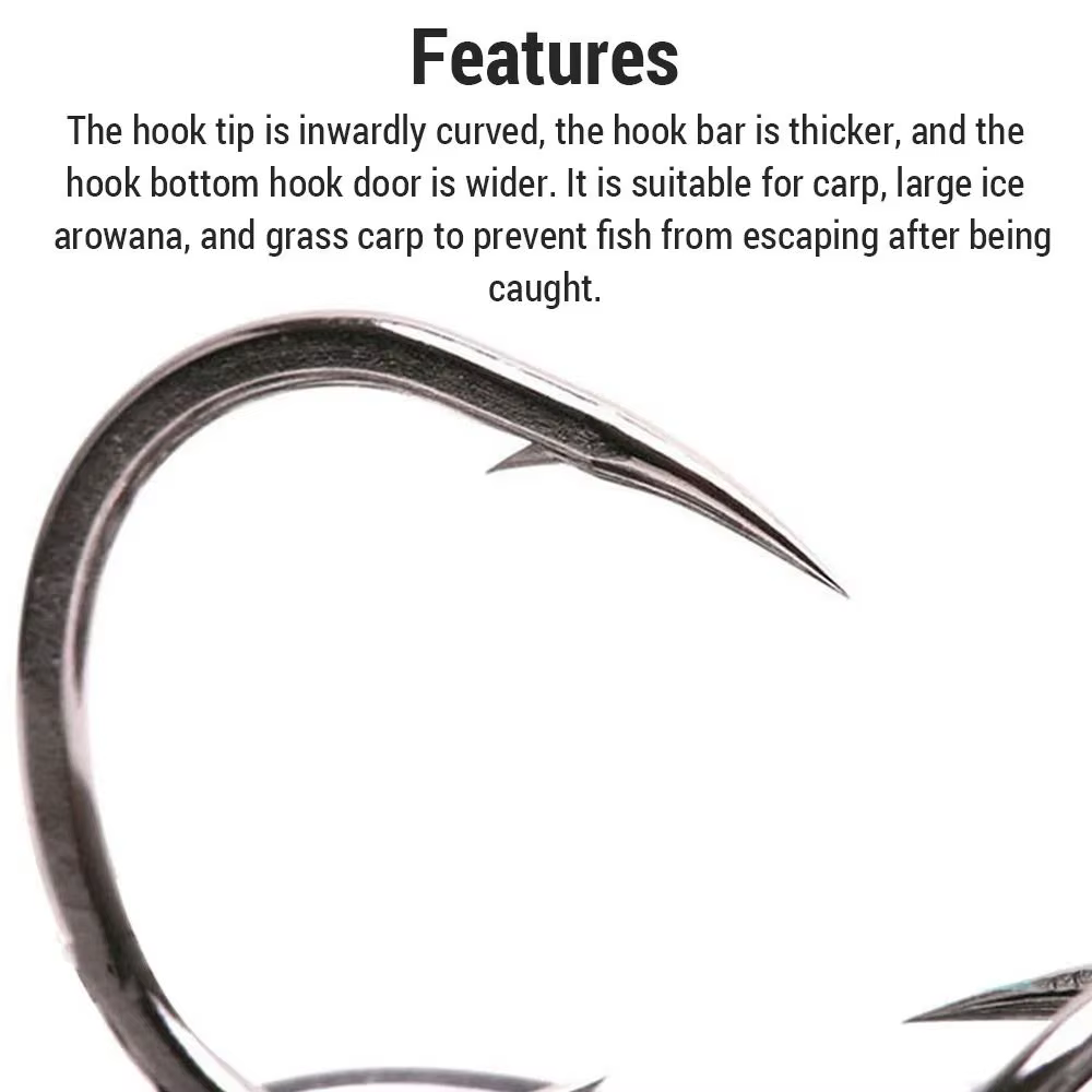 La punta del anzuelo hacia adentro, la barra gruesa del anzuelo y el fondo ancho del anzuelo lo hacen adecuado para todo tipo de peces.