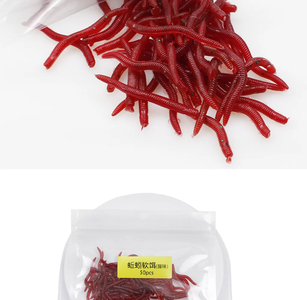 50/100 Uds señuelo suave lubina dorada gusano de sangre pesca lombriz de tierra gusanos rojos cebos olor a pescado aparejos realistas