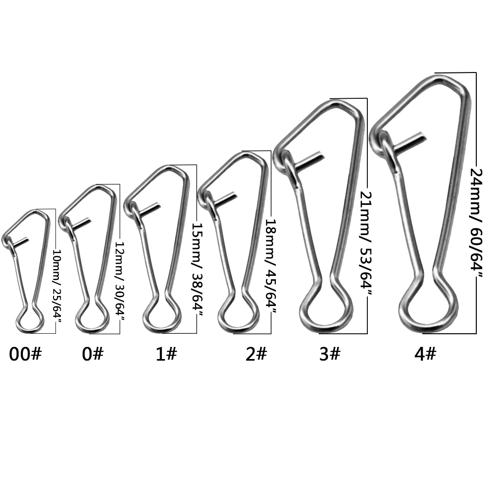 50/100 unids/caja mar Snap ganchos para pescar Acero inoxidable pesca Swivels gancho conector de sedal 00/0/1/2/3/4 # Snap Clips
