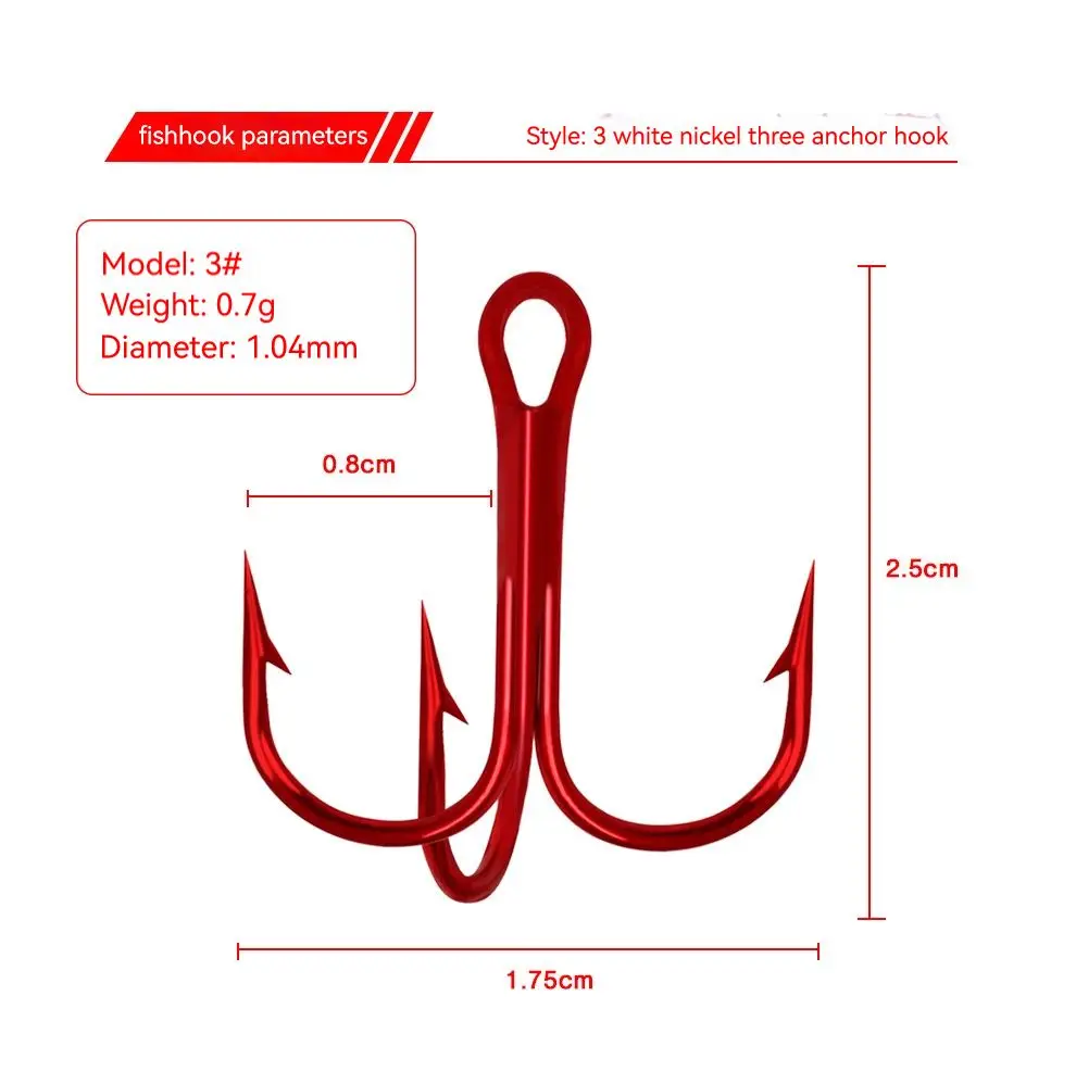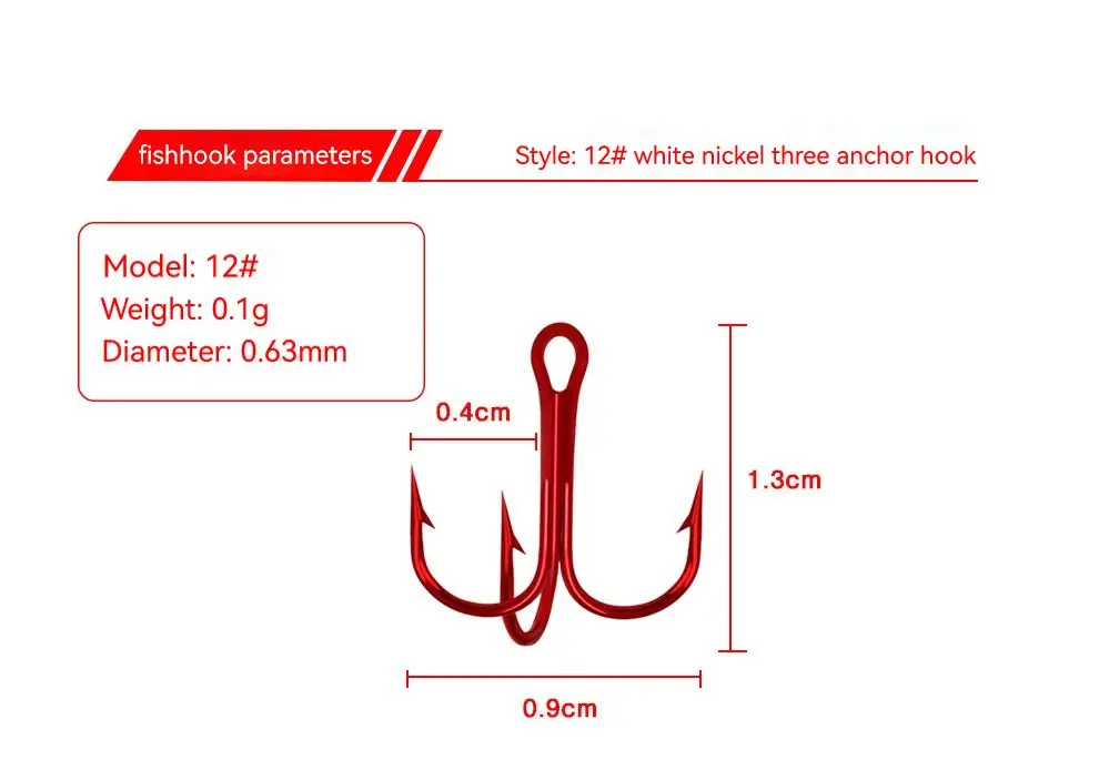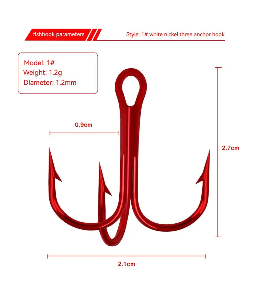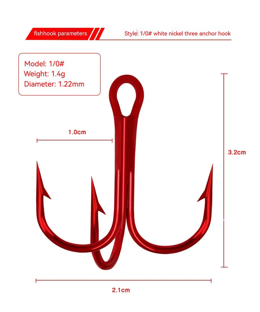50 anzuelos de pesca 1 # -12 # Anzuelos triples de acero con alto contenido de carbono para aparejos de pesca extraíbles FISHHOOK con púas rojas