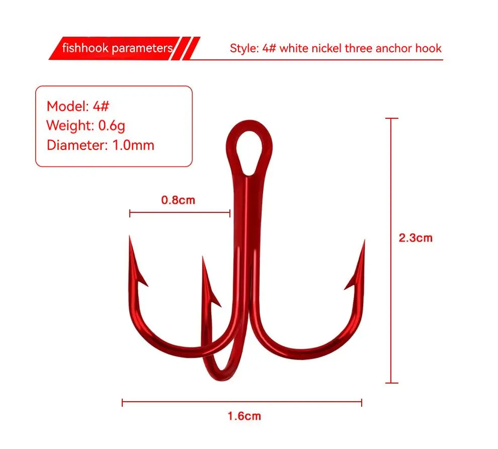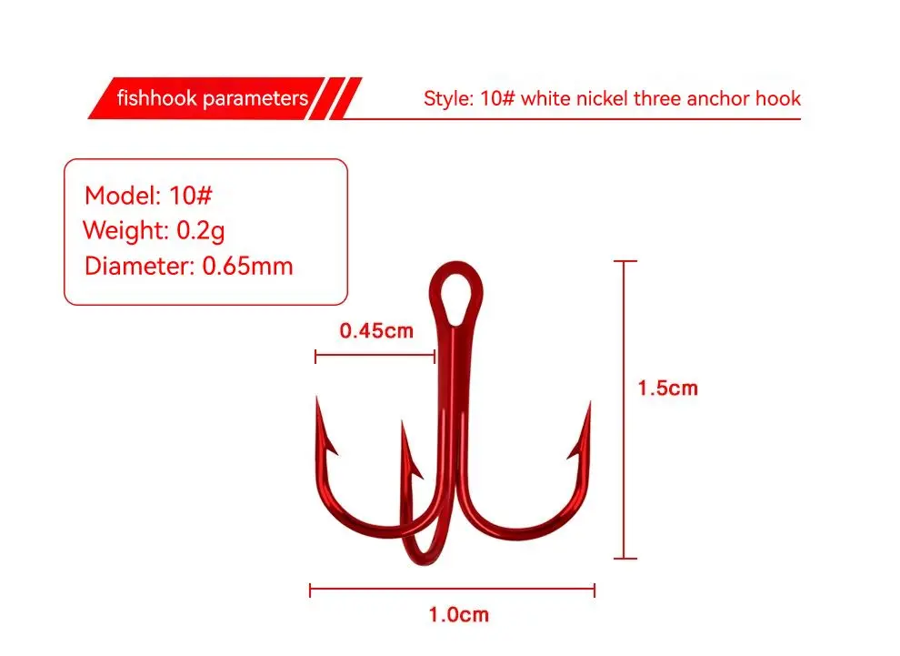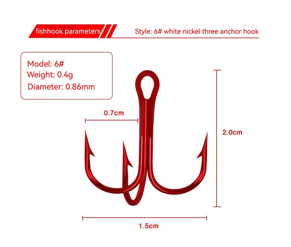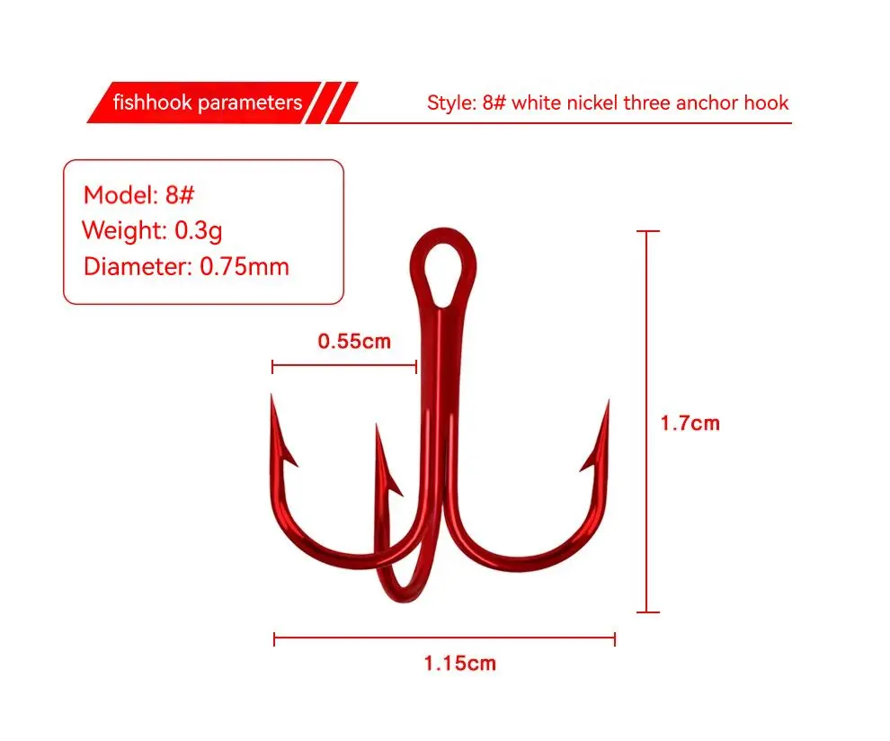 50 anzuelos de pesca 1 # -12 # Anzuelos triples de acero con alto contenido de carbono para aparejos de pesca extraíbles FISHHOOK con púas rojas