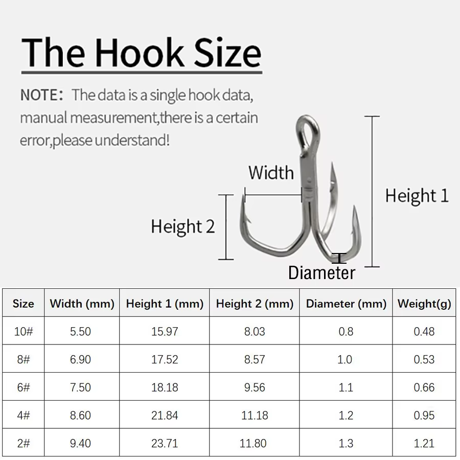 50 Uds. Anzuelos triples, anzuelos de pesca con punta de aguja, anzuelos de acero rico en carbono, anzuelos extra afilados para pesca en agua dulce y salada, 2# 4# 6# 8# 10#