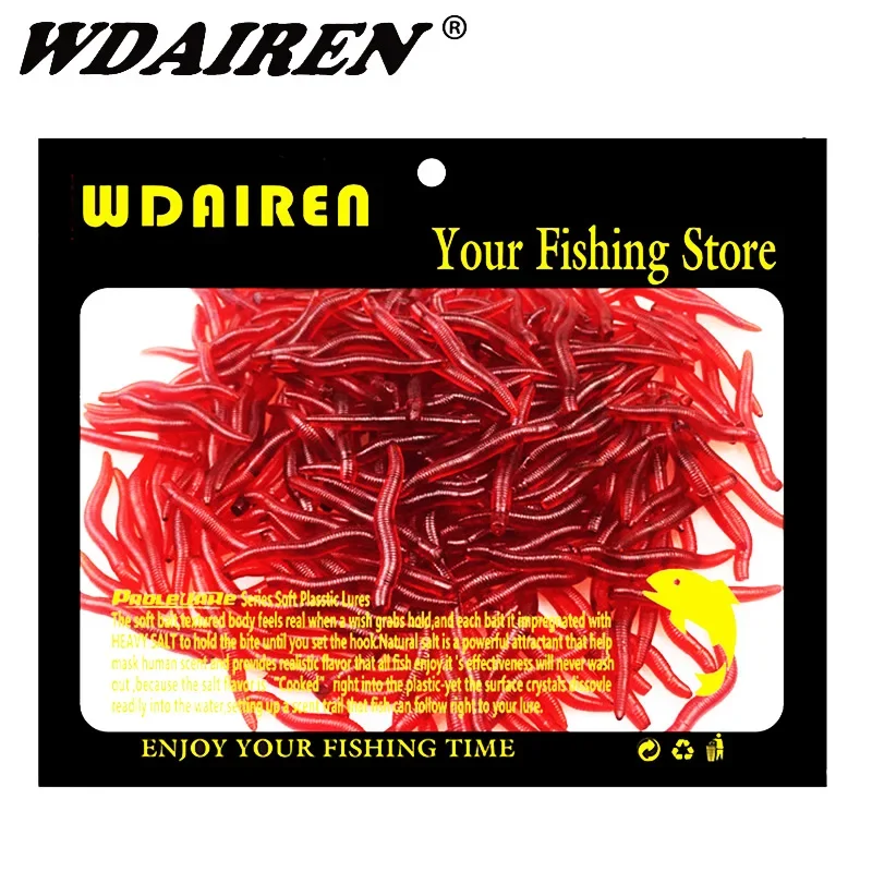 50 o 100 Uds olor a camarón gusano rojo señuelo suave 3,5 cm realista gusano de tierra aditivo de sal cebo Artificial de goma para aparejos de pesca de carpa lubina