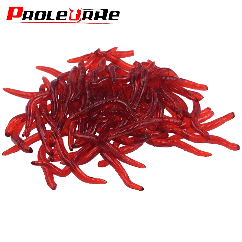Aditivo con olor a Camarón de 50 o 100 piezas, cebo suave de lombriz roja, cebo Artificial de gusano rojo de silicona, aparejos de pesca de trucha de carpa lubina