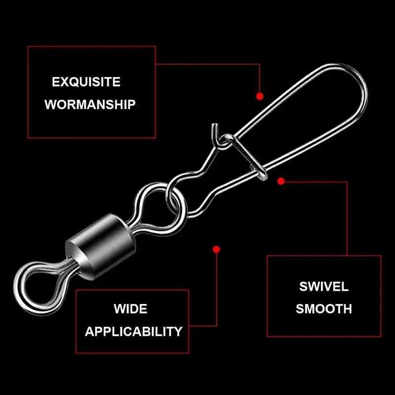 • 50 piezas :Este paquete incluye 50 conectores de pesca, lo que lo convierte en una opción económica para los pescadores que necesitan reemplazar regularmente sus accesorios de pesca.