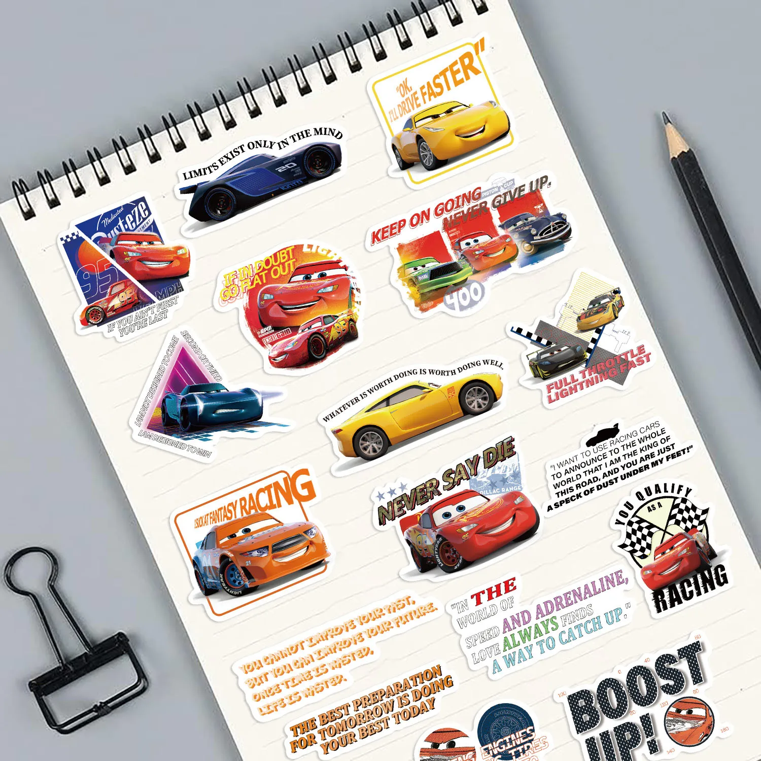 50 STKS Disney Cars Citaat Lightning McQueen Stickers Waterdichte Graffiti Telefoon Laptop Bagage Notebook Cartoon Stickers Kinderen Speelgoed